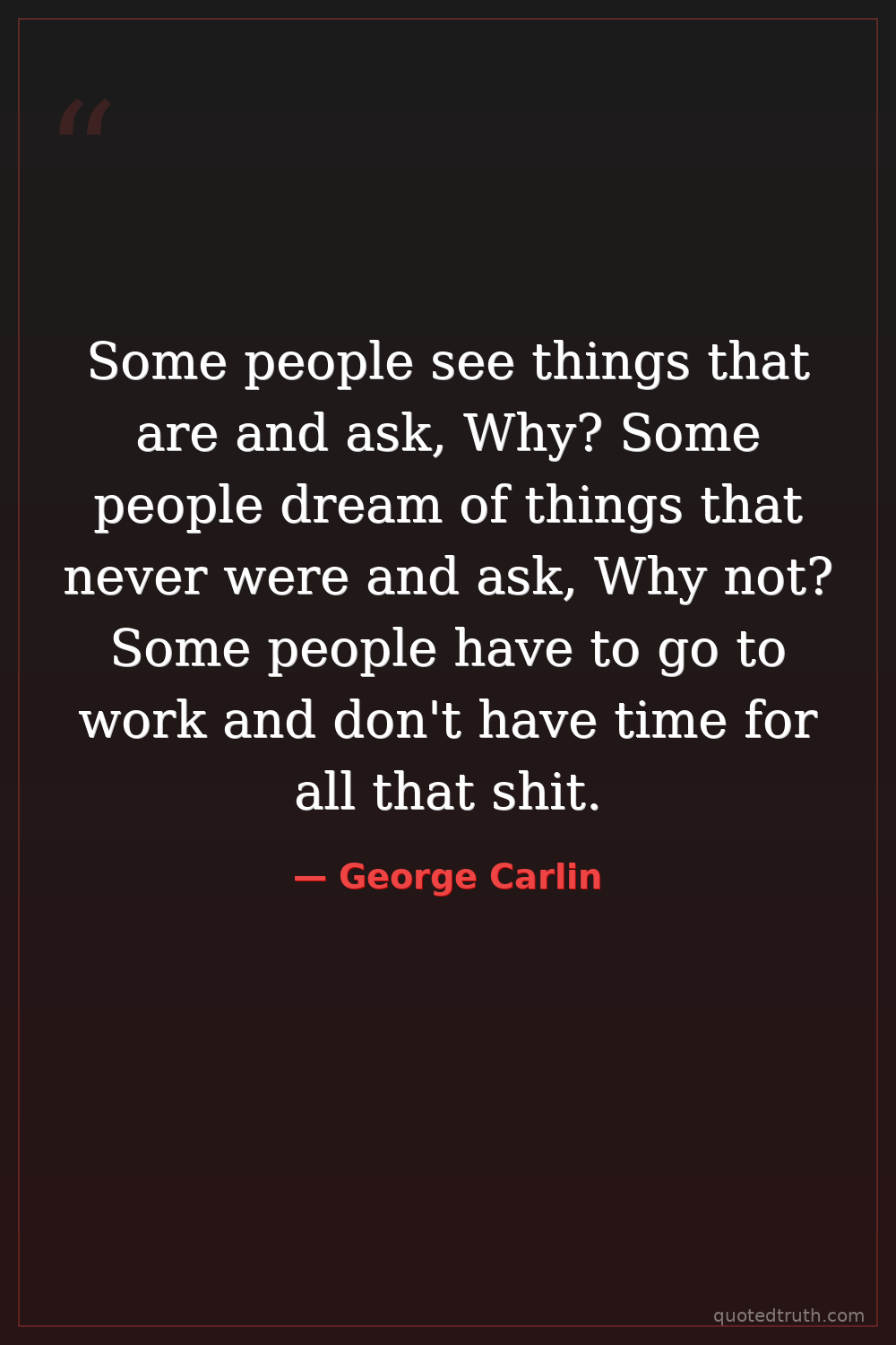 Some people see things that are and ask, Why? Some people dream of things that never were and ask, Why not? Some people have to go to work and don't have time for all that shit.