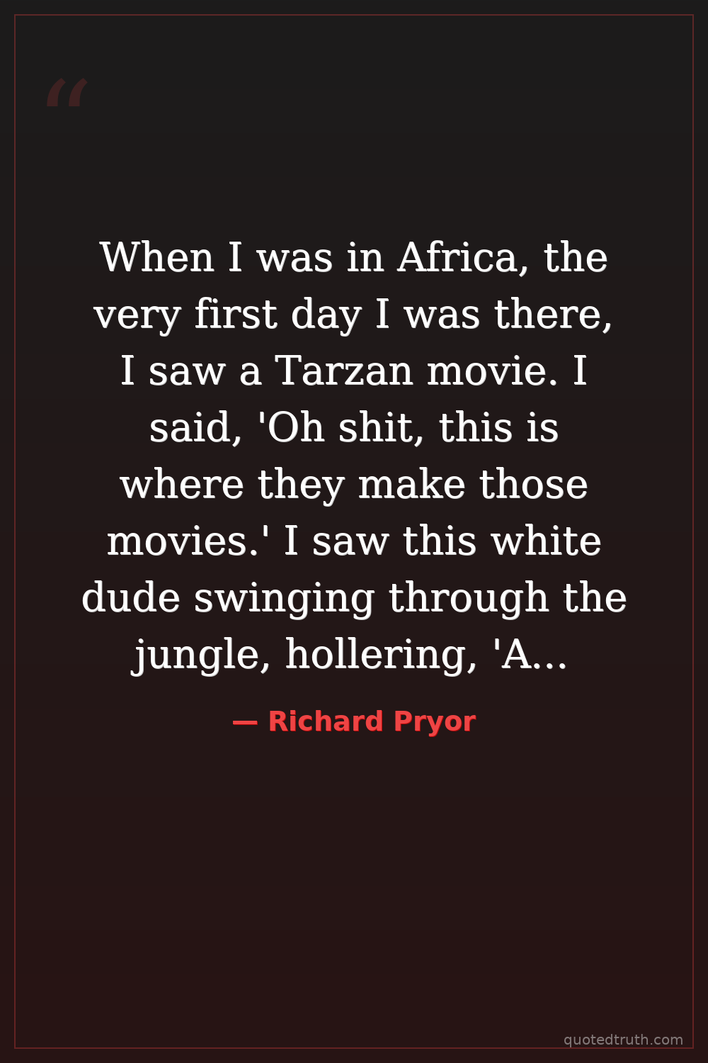 When I was in Africa, the very first day I was there, I saw a Tarzan movie. I said, 'Oh shit, this is where they make those movies.' I saw this white dude swinging through the jungle, hollering, 'Aaaahhhh-ahhhh!' I said, 'Damn, that's some racist shit.'