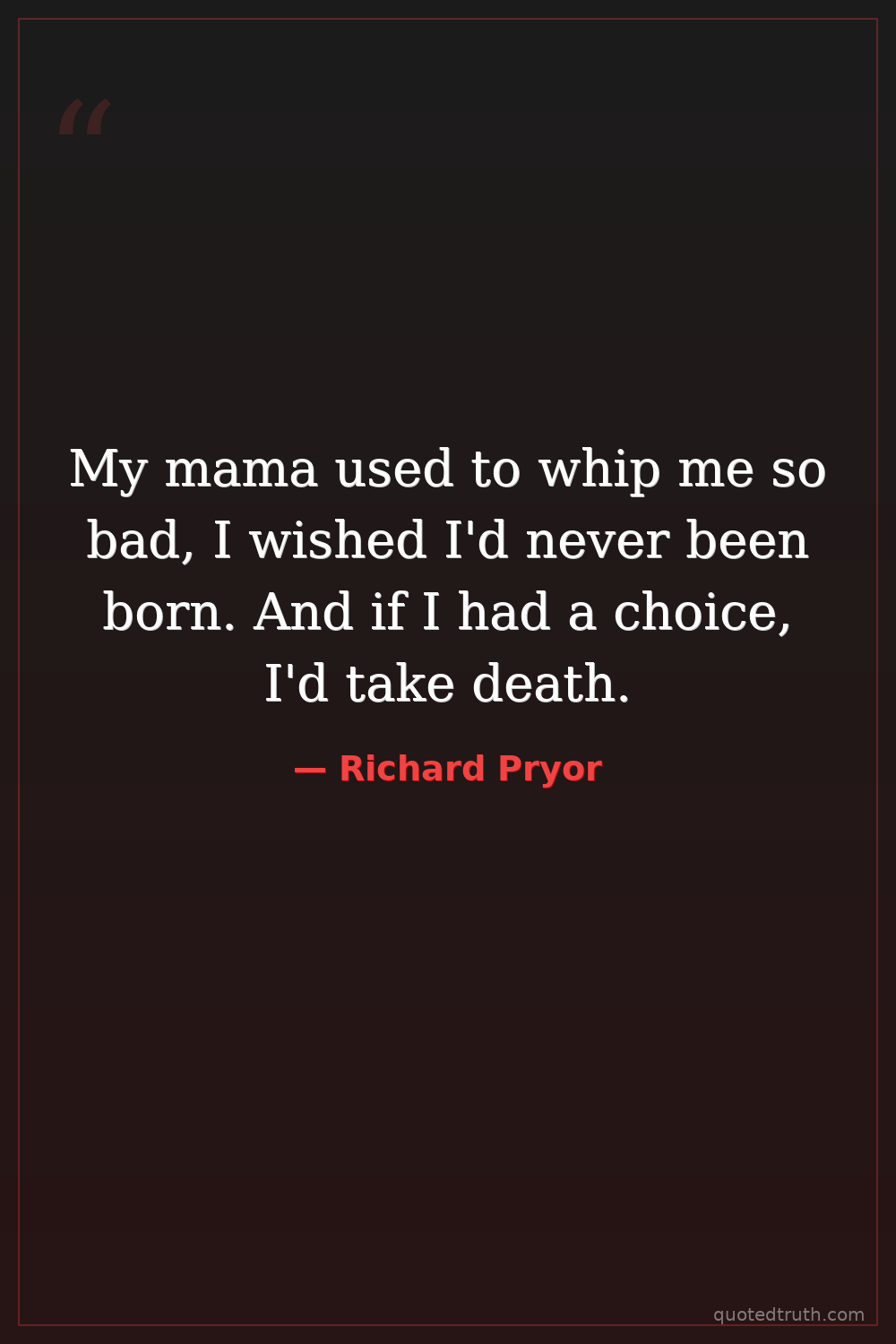 My mama used to whip me so bad, I wished I'd never been born. And if I had a choice, I'd take death.