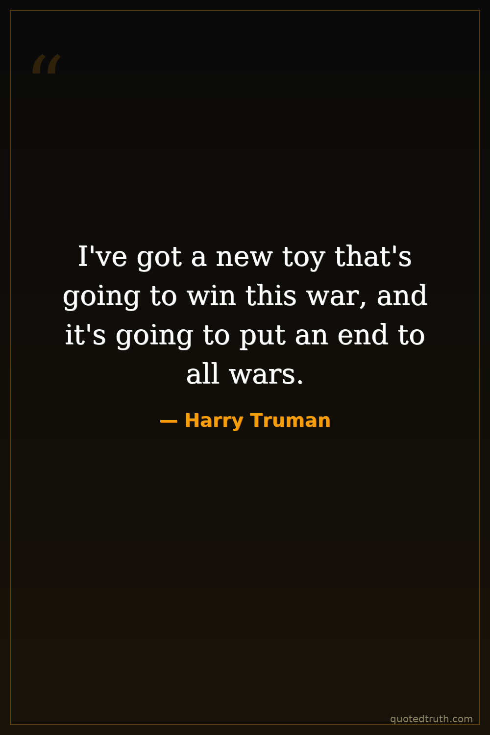 I've got a new toy that's going to win this war, and it's going to put an end to all wars.