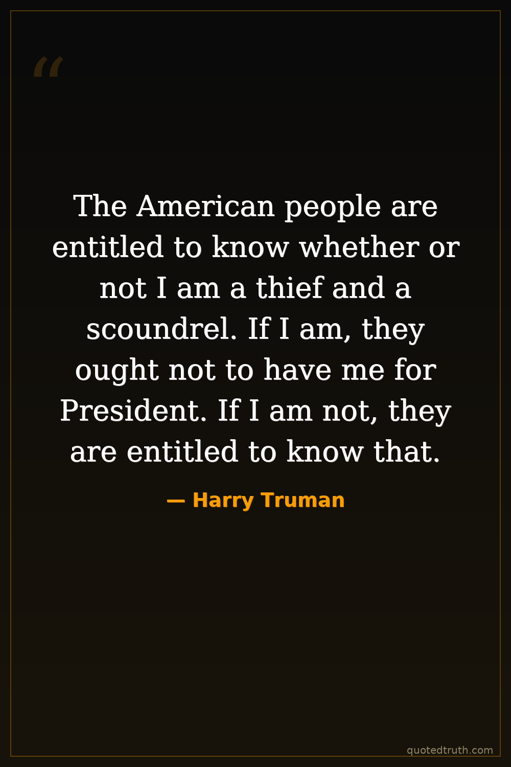 The American people are entitled to know whether or not I am a thief and a scoundrel. If I am, they ought not to have me for President. If I am not, they are entitled to know that.