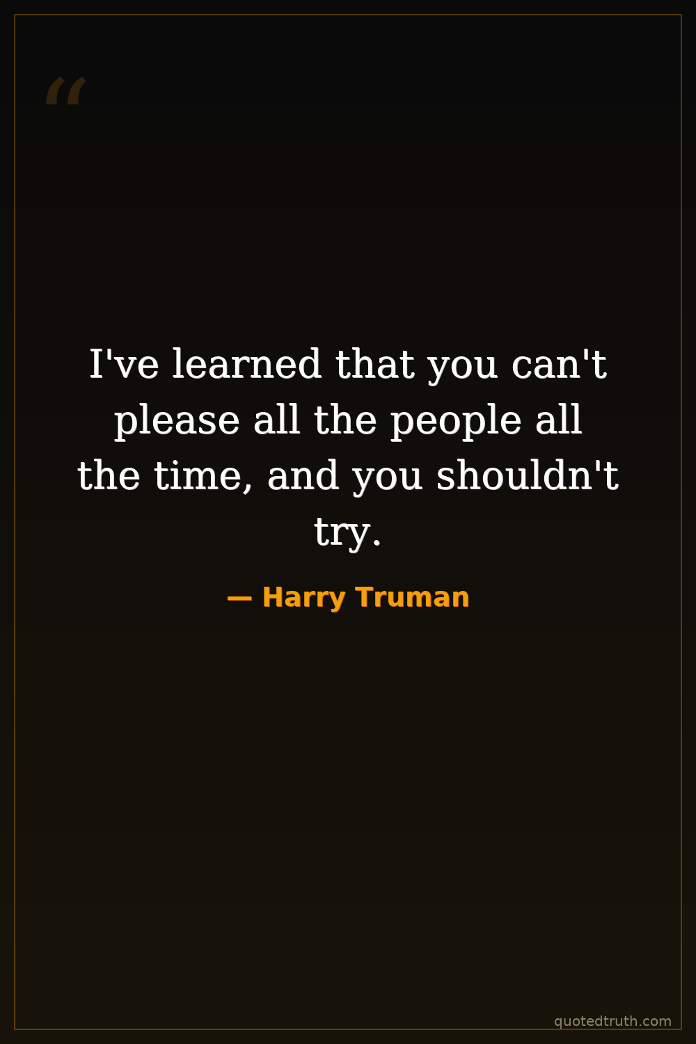 I've learned that you can't please all the people all the time, and you shouldn't try.