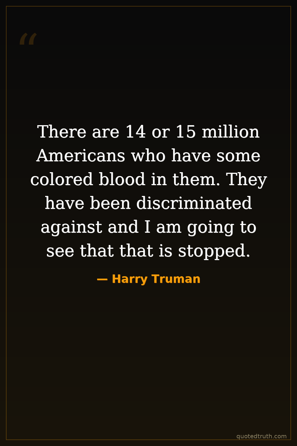 There are 14 or 15 million Americans who have some colored blood in them. They have been discriminated against and I am going to see that that is stopped.