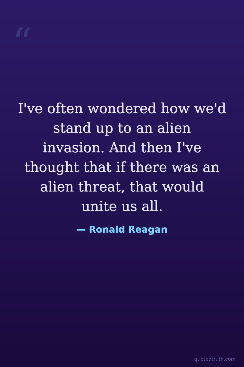I've often wondered how we'd stand up to an alien invasion. And then I've thought that if there was an alien threat, that would unite us all.