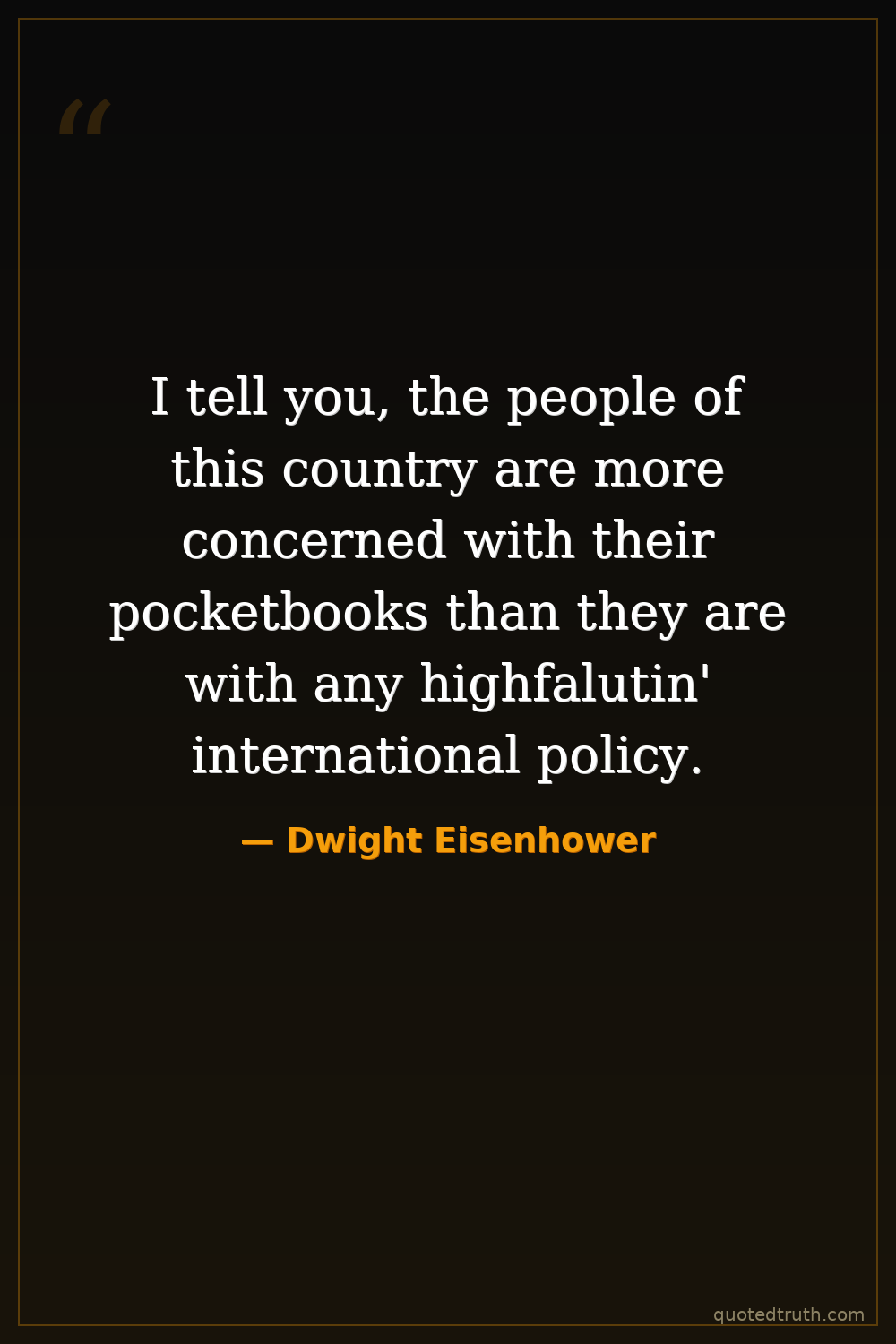 I tell you, the people of this country are more concerned with their pocketbooks than they are with any highfalutin' international policy.