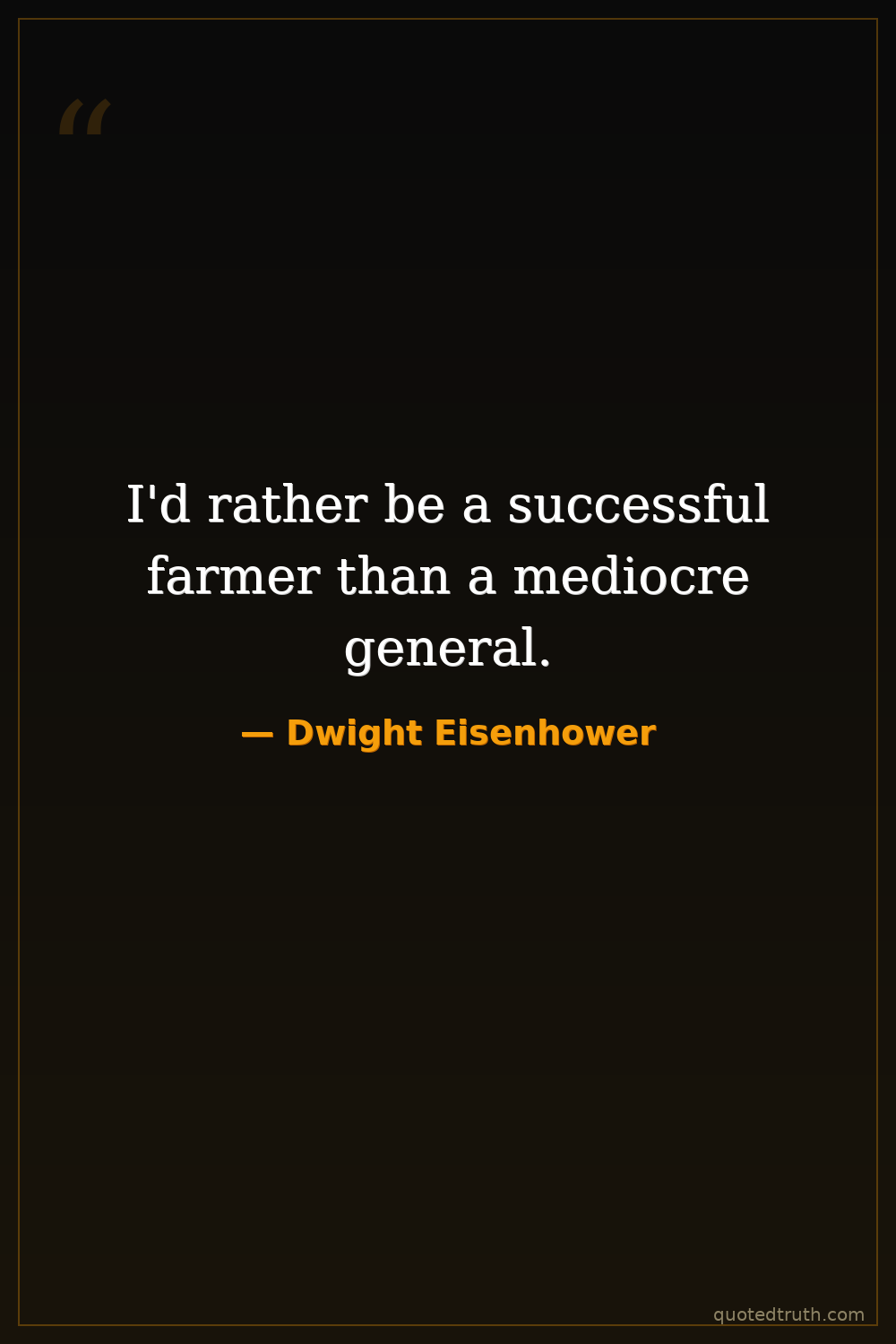 I'd rather be a successful farmer than a mediocre general.