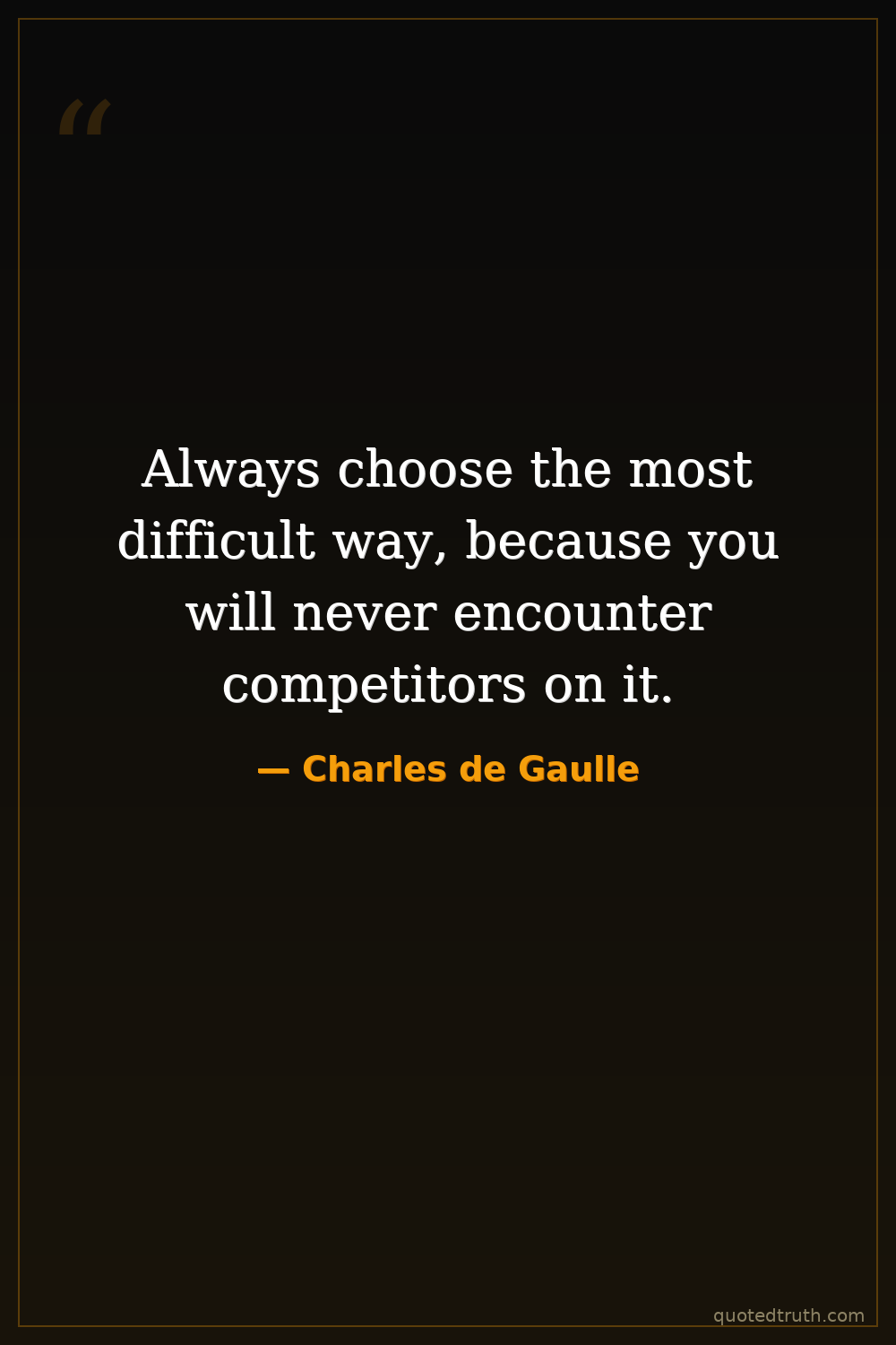 Always choose the most difficult way, because you will never encounter competitors on it.