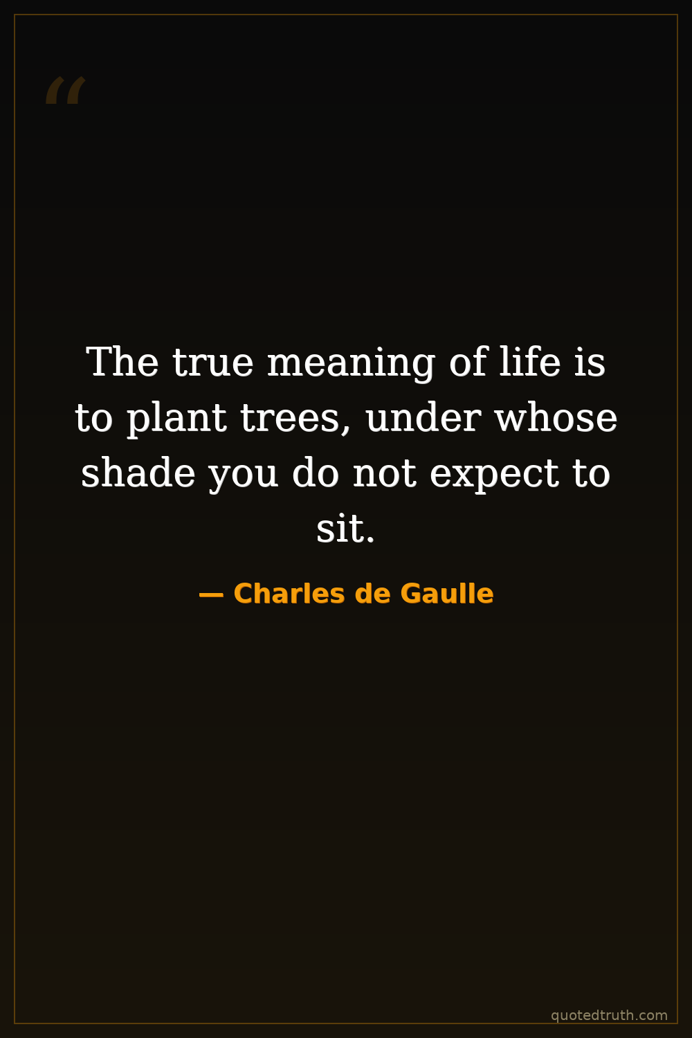 The true meaning of life is to plant trees, under whose shade you do not expect to sit.