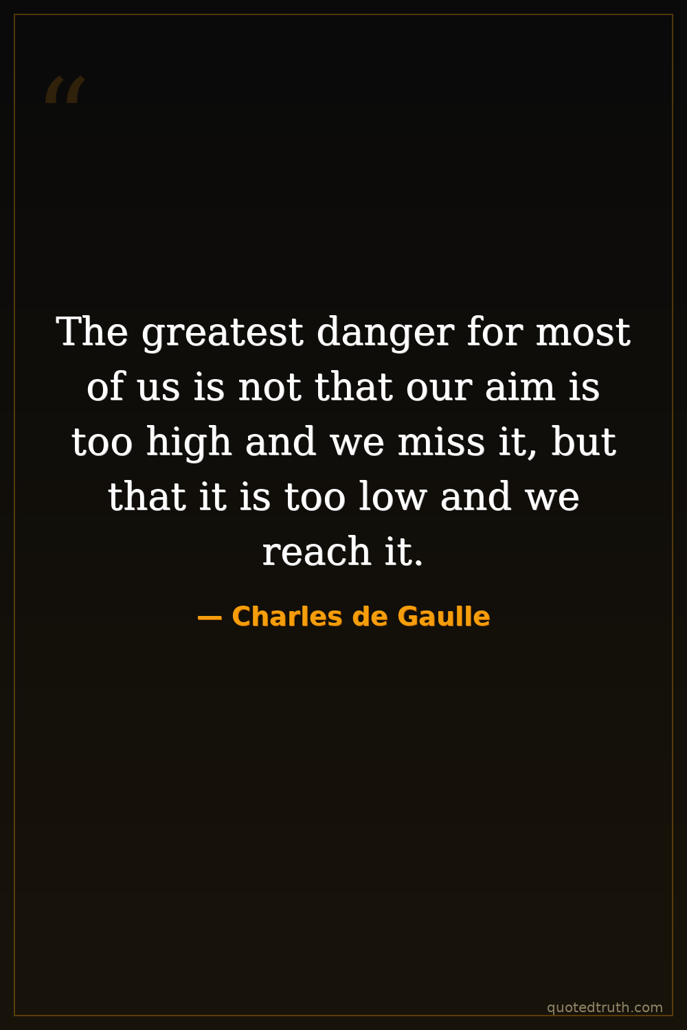 The greatest danger for most of us is not that our aim is too high and we miss it, but that it is too low and we reach it.