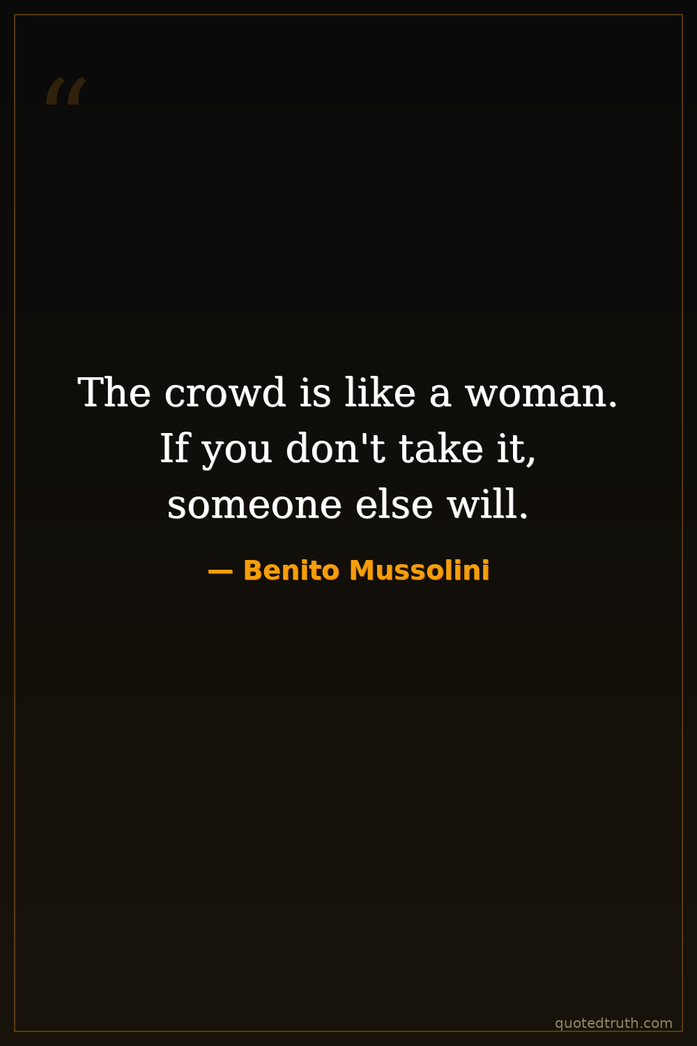 The crowd is like a woman. If you don't take it, someone else will.