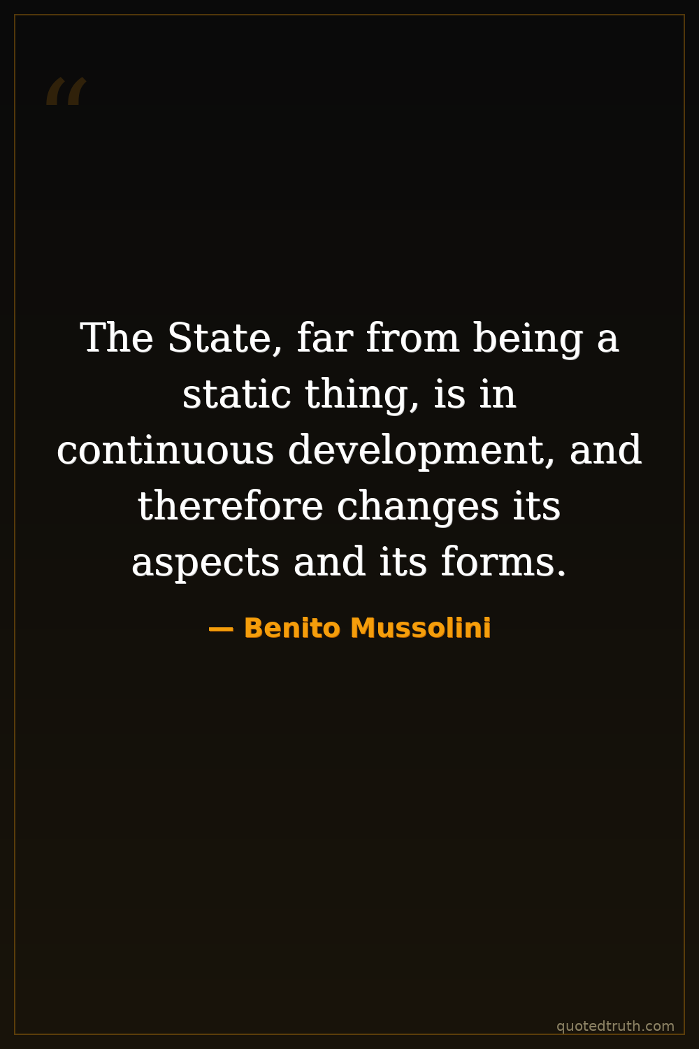 The State, far from being a static thing, is in continuous development, and therefore changes its aspects and its forms.