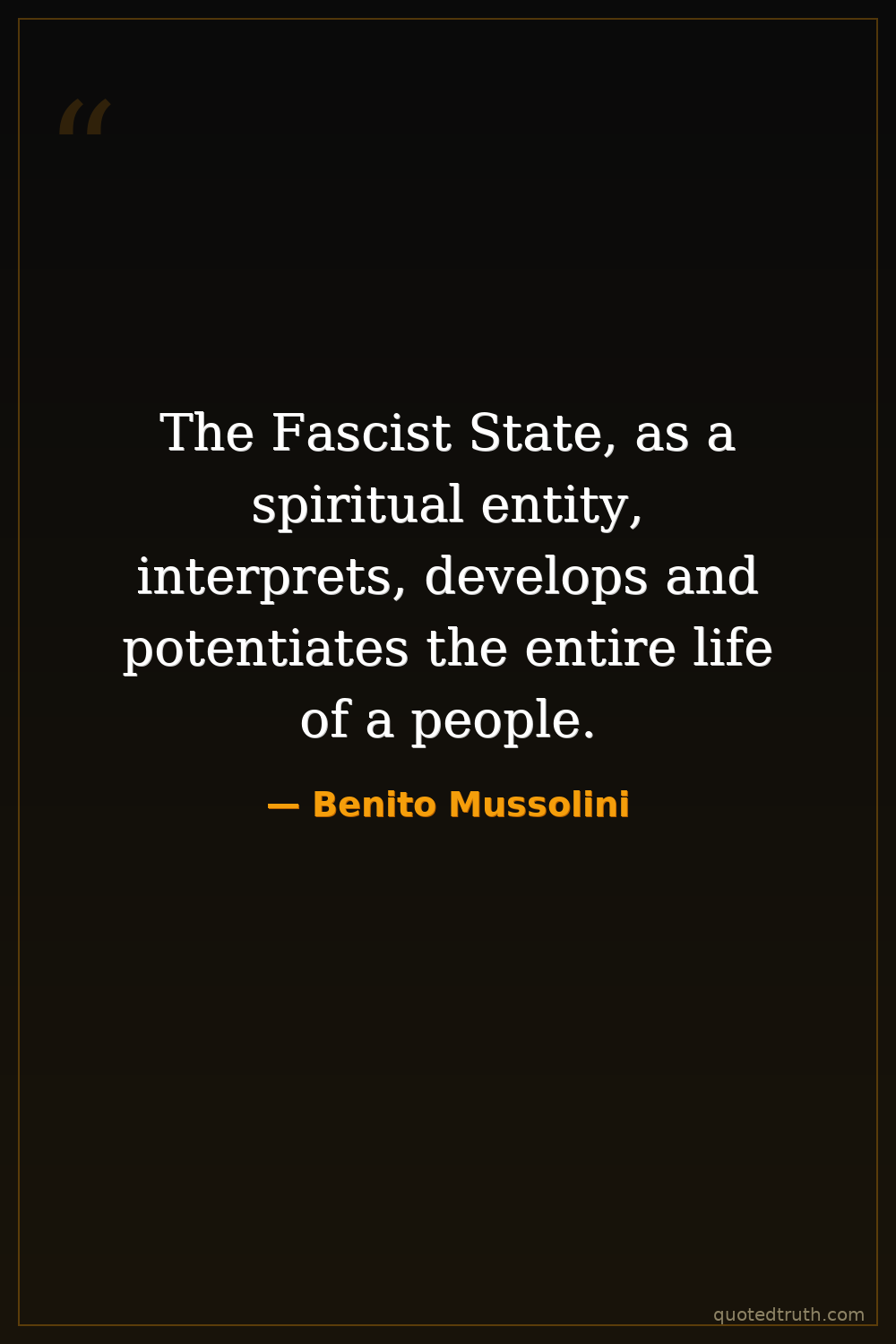 The Fascist State, as a spiritual entity, interprets, develops and potentiates the entire life of a people.