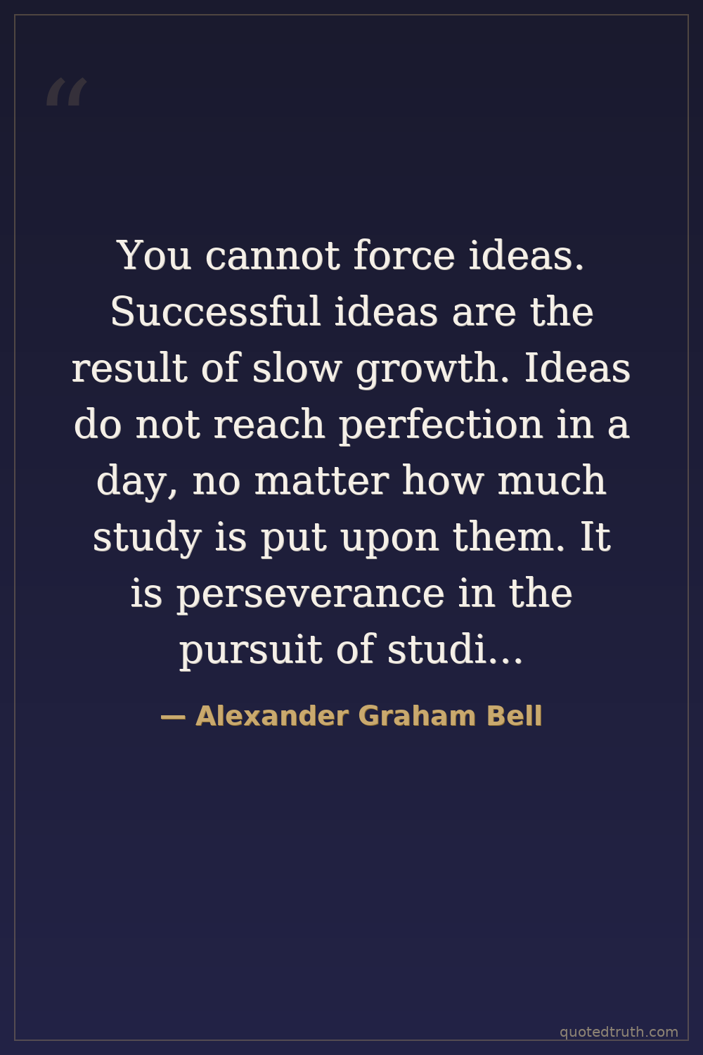 You cannot force ideas. Successful ideas are the result of slow growth. Ideas do not reach perfection in a day, no matter how much study is put upon them. It is perseverance in the pursuit of studies that is really wanted.