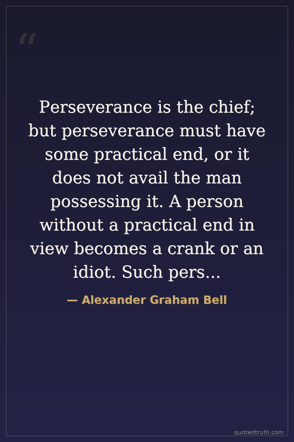 Perseverance is the chief; but perseverance must have some practical end, or it does not avail the man possessing it. A person without a practical end in view becomes a crank or an idiot. Such persons fill our insane asylums.