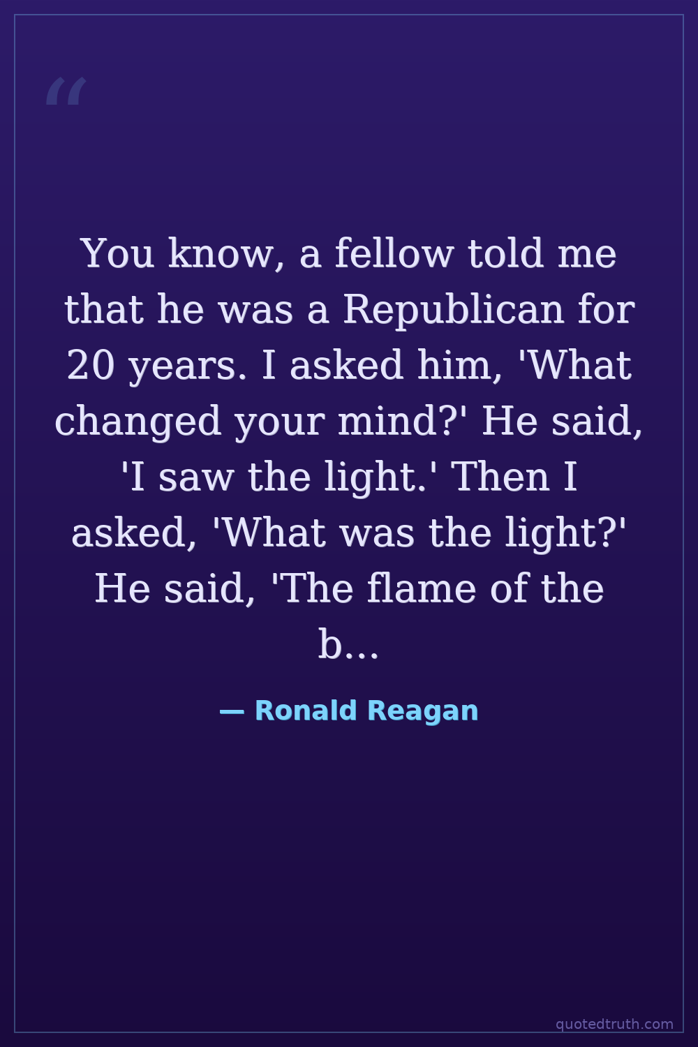 You know, a fellow told me that he was a Republican for 20 years. I asked him, 'What changed your mind?' He said, 'I saw the light.' Then I asked, 'What was the light?' He said, 'The flame of the burning cross.'