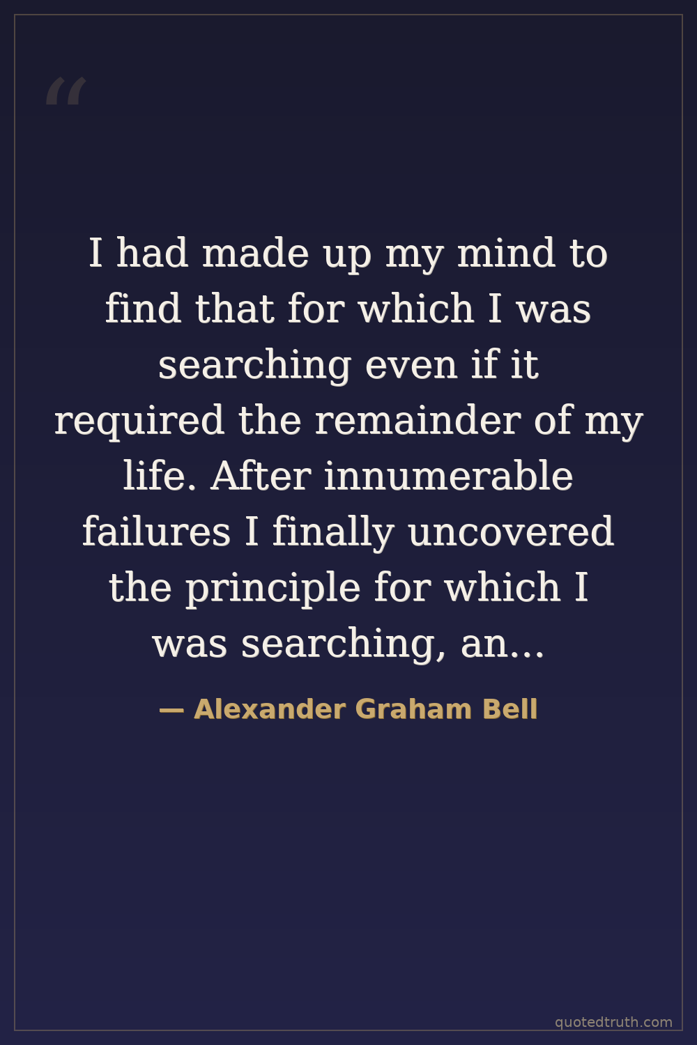 I had made up my mind to find that for which I was searching even if it required the remainder of my life. After innumerable failures I finally uncovered the principle for which I was searching, and I was astounded at its simplicity. — Alexander Graham Bell Modern Telephone inventor