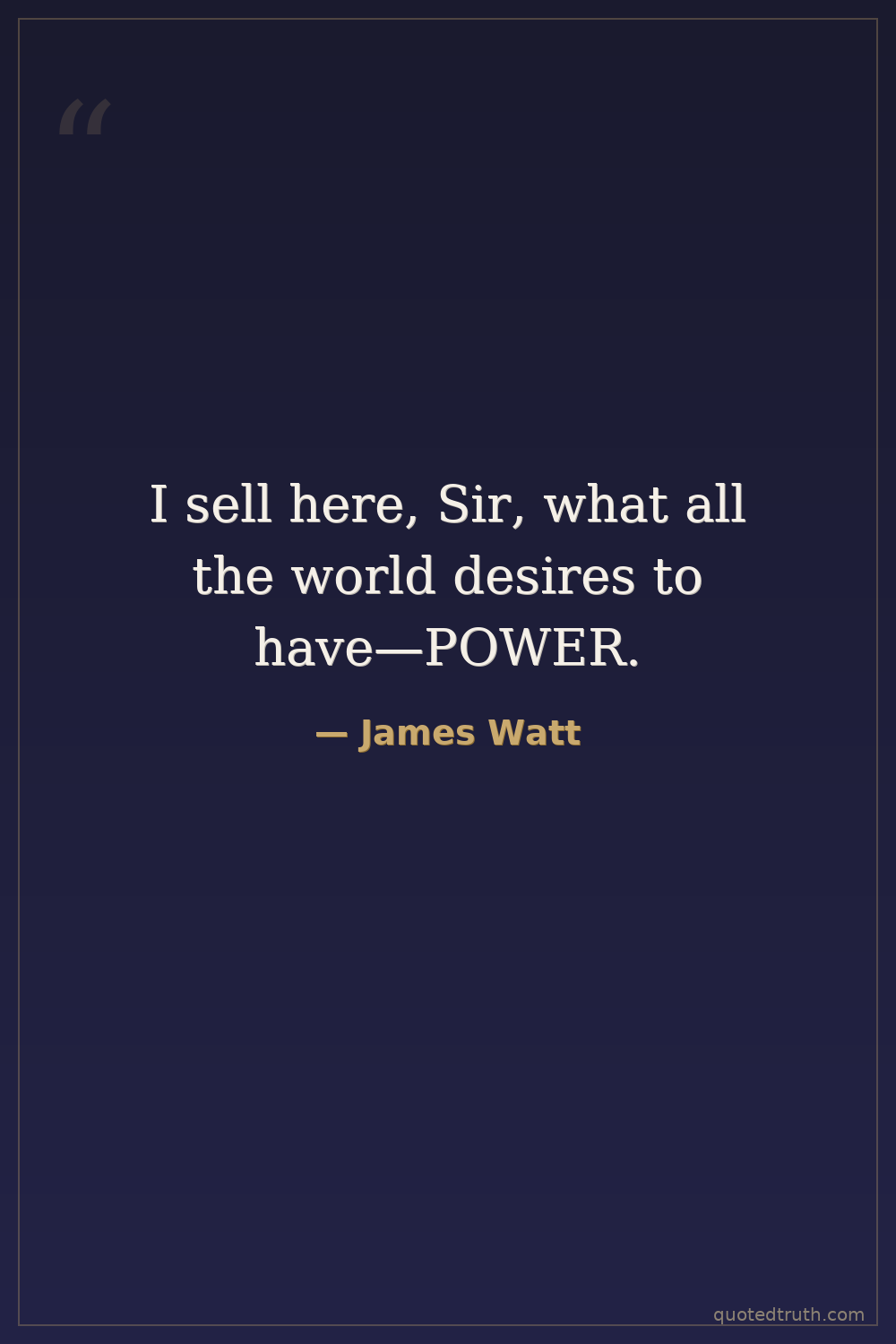 I sell here, Sir, what all the world desires to have—POWER.