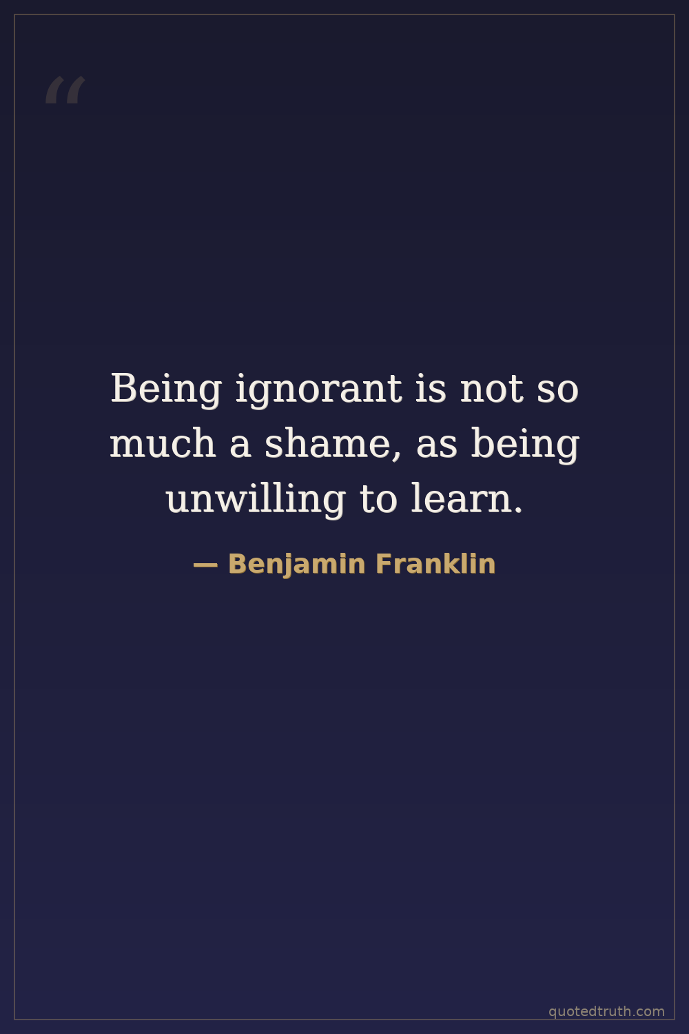 Being ignorant is not so much a shame, as being unwilling to learn.