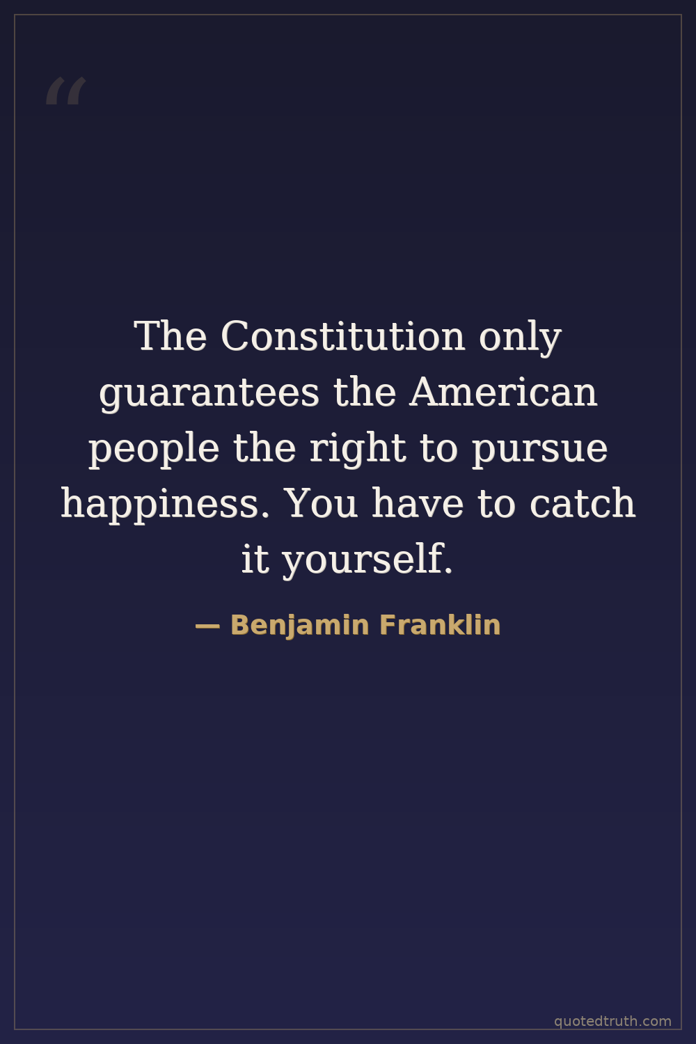 The Constitution only guarantees the American people the right to pursue happiness. You have to catch it yourself.