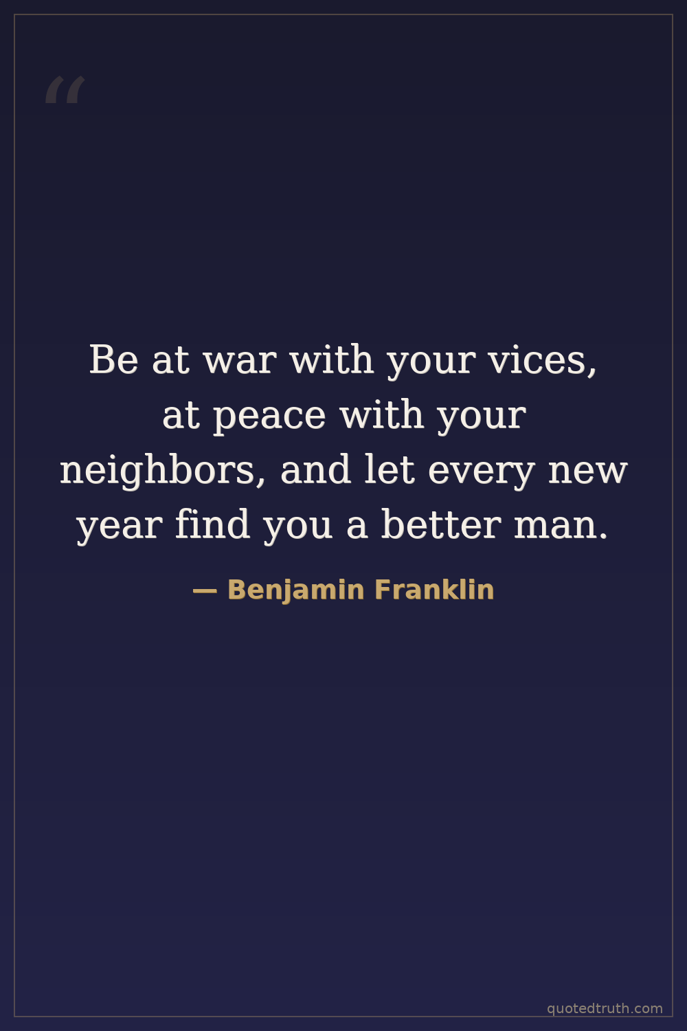 Be at war with your vices, at peace with your neighbors, and let every new year find you a better man.