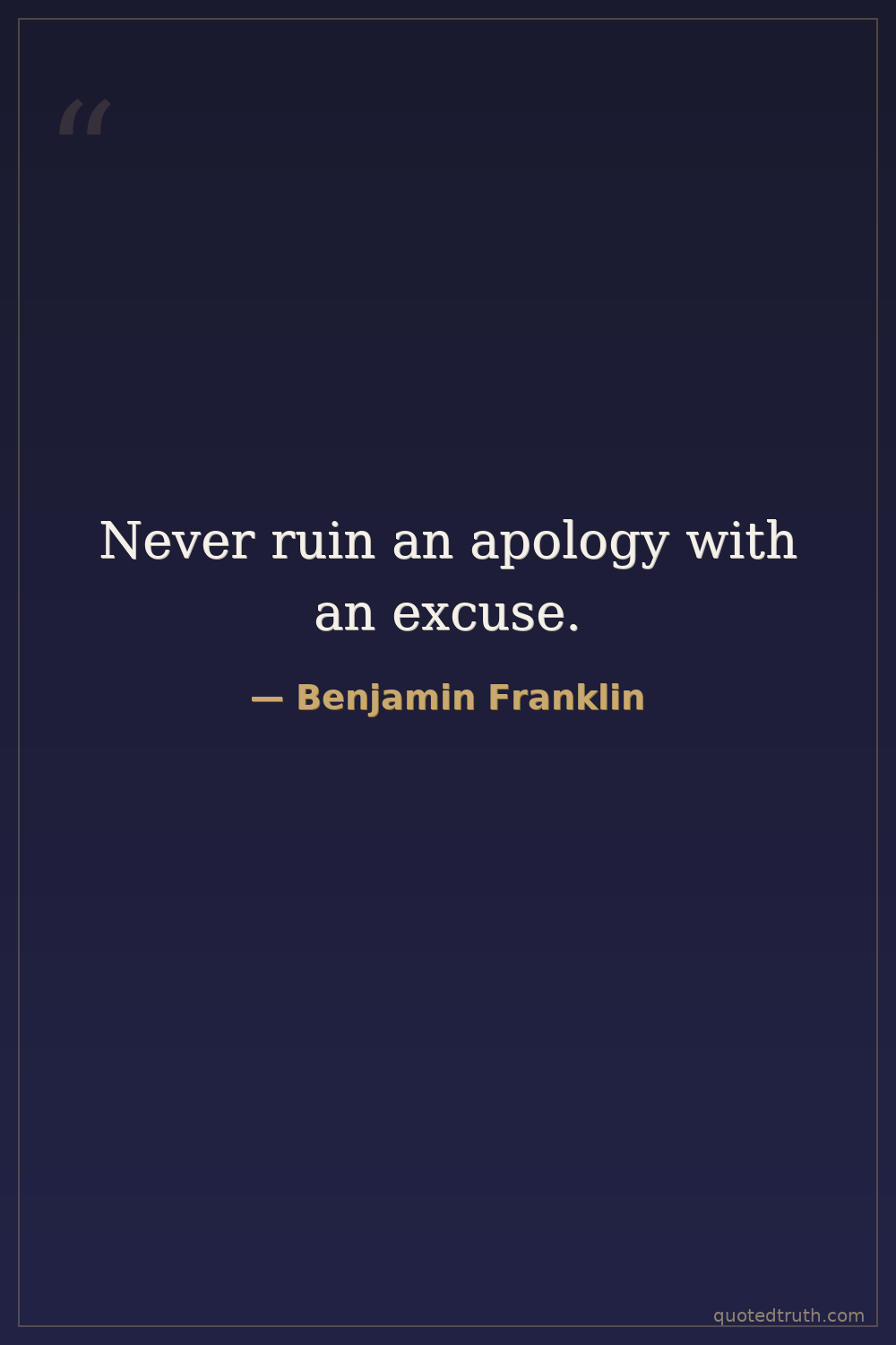 Never ruin an apology with an excuse.