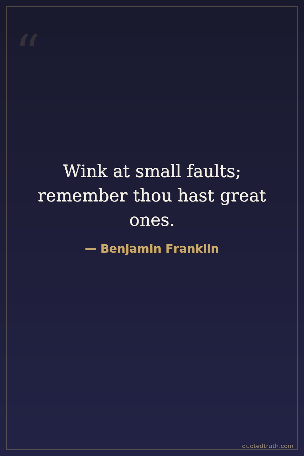 Wink at small faults; remember thou hast great ones.
