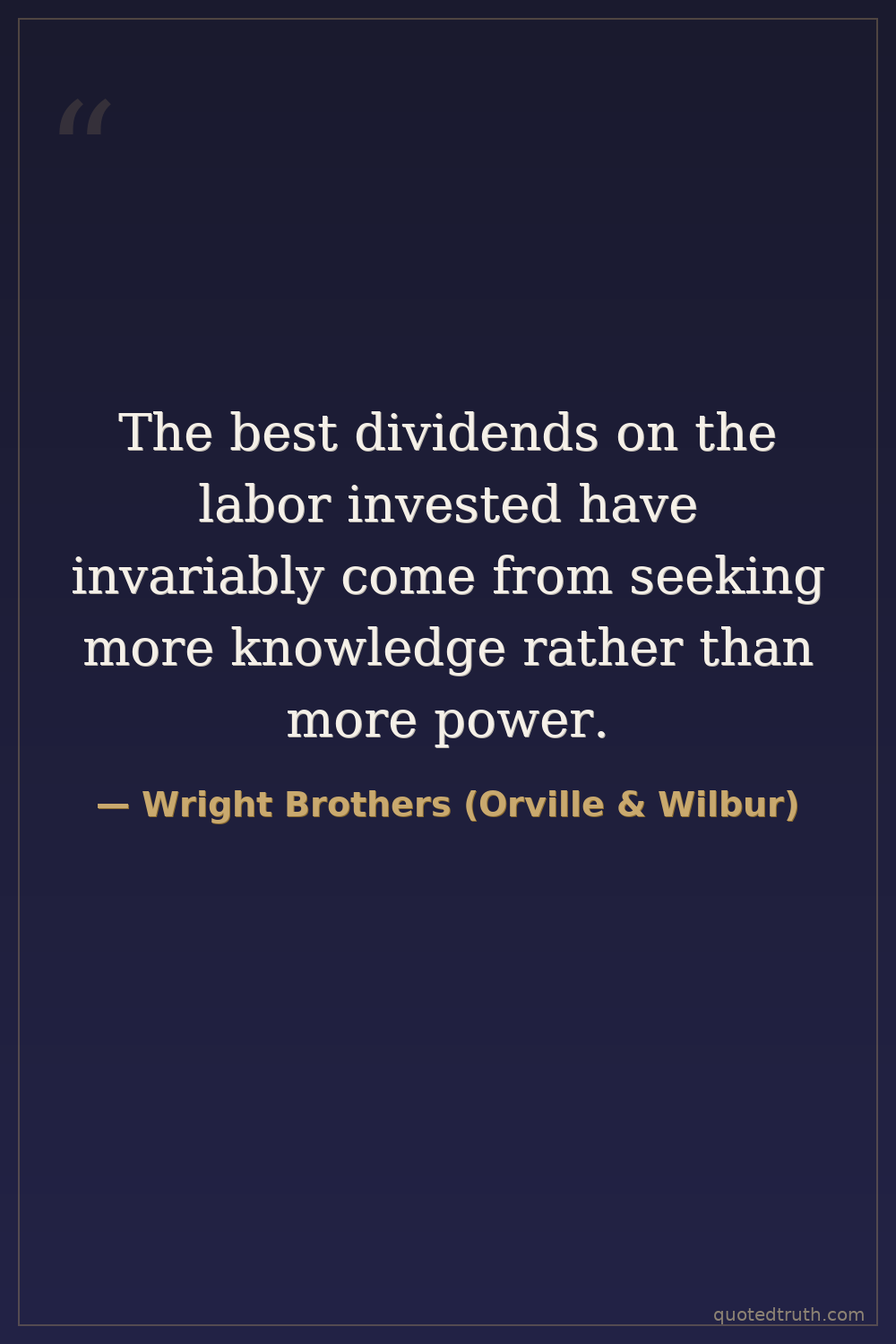 The best dividends on the labor invested have invariably come from seeking more knowledge rather than more power.
