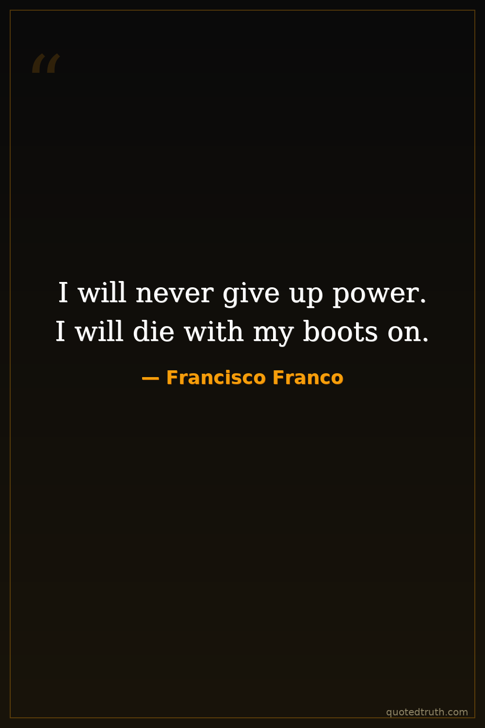 I will never give up power. I will die with my boots on.
