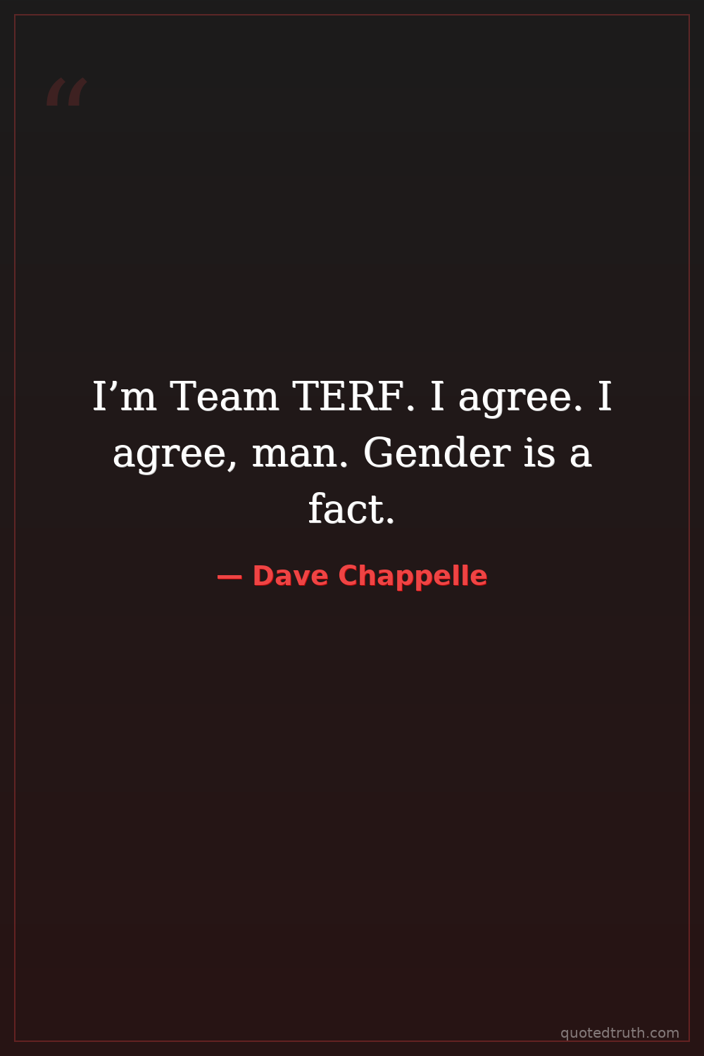 I’m Team TERF. I agree. I agree, man. Gender is a fact.
