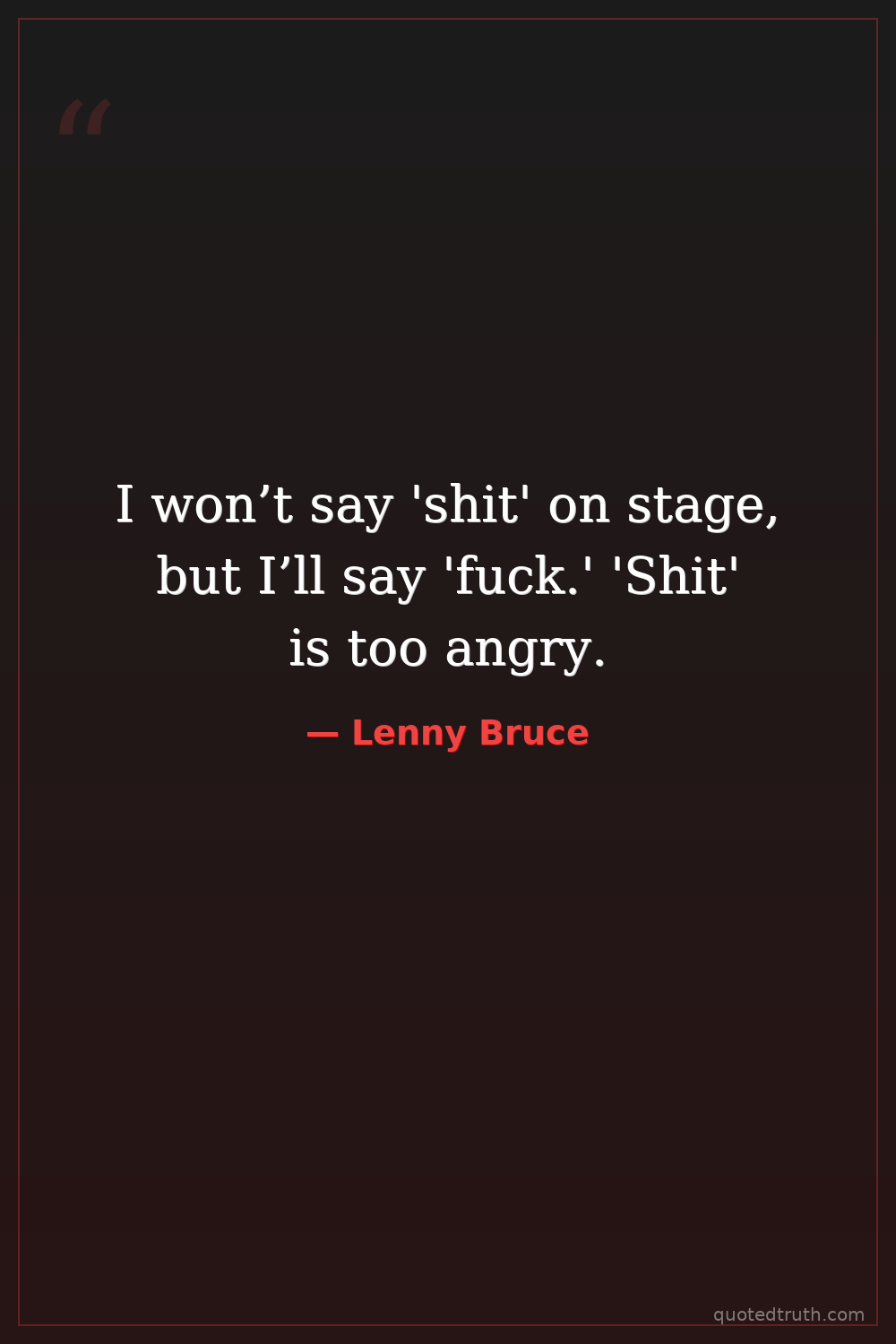 I won’t say 'shit' on stage, but I’ll say 'fuck.' 'Shit' is too angry.