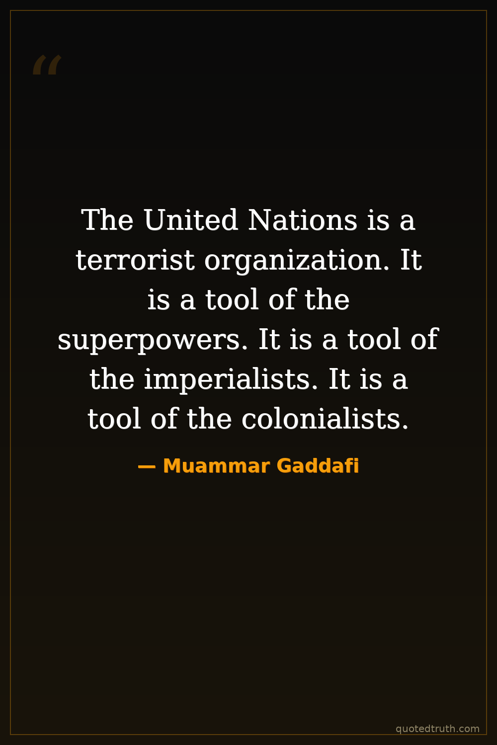 The United Nations is a terrorist organization. It is a tool of the superpowers. It is a tool of the imperialists. It is a tool of the colonialists.