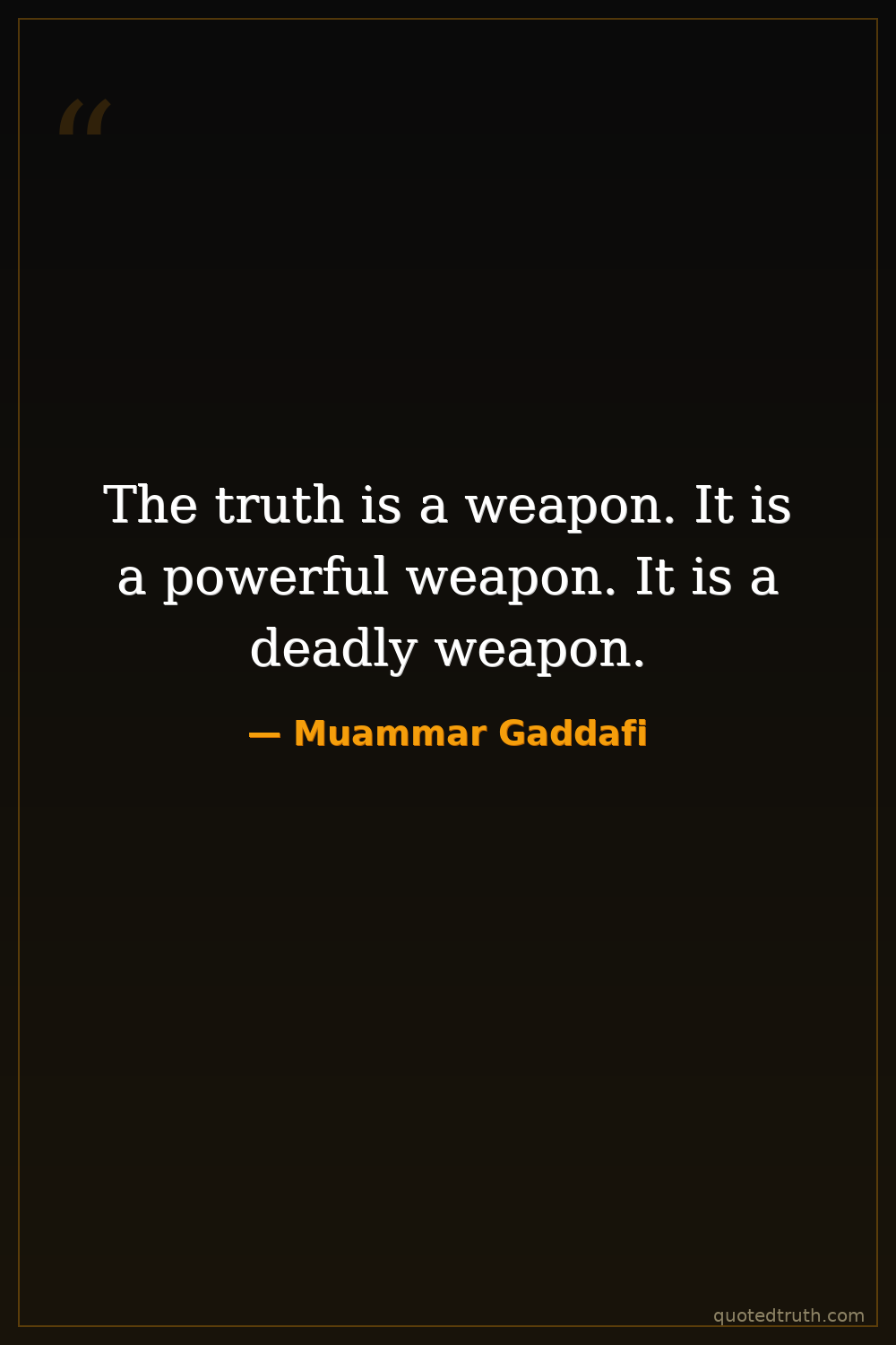 The truth is a weapon. It is a powerful weapon. It is a deadly weapon.