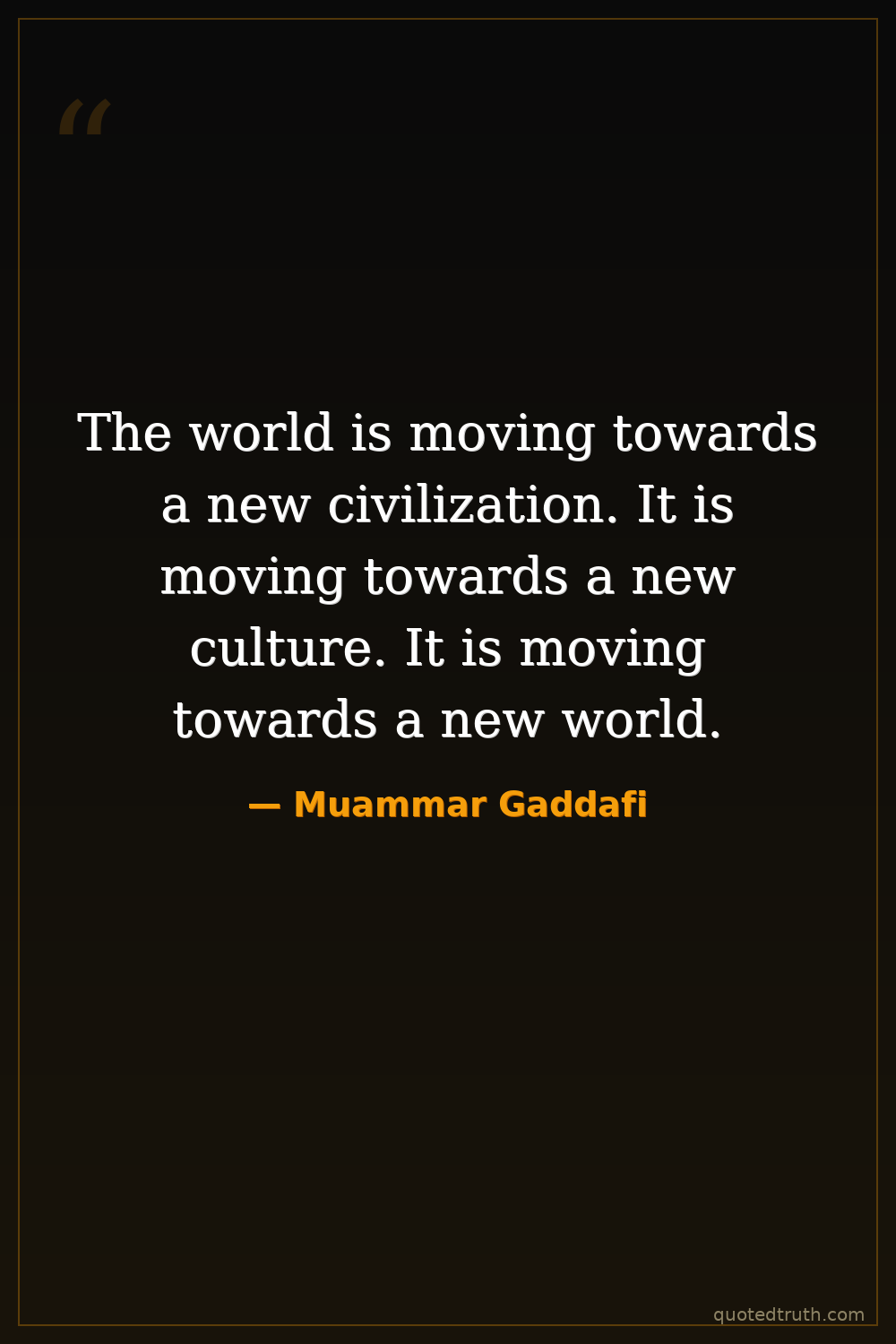 The world is moving towards a new civilization. It is moving towards a new culture. It is moving towards a new world.