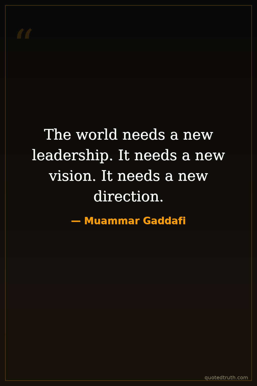 The world needs a new leadership. It needs a new vision. It needs a new direction.