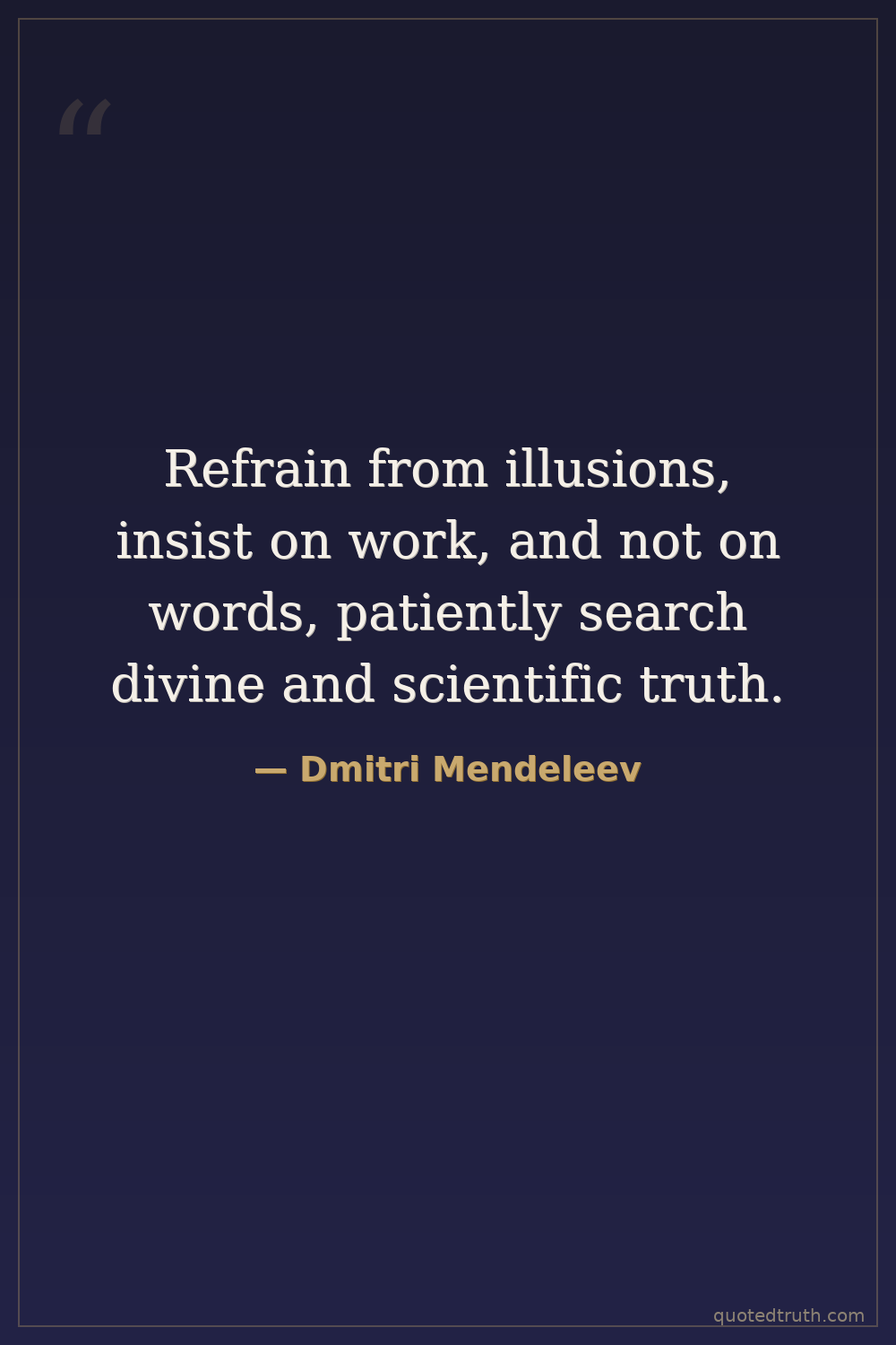 Refrain from illusions, insist on work, and not on words, patiently search divine and scientific truth.