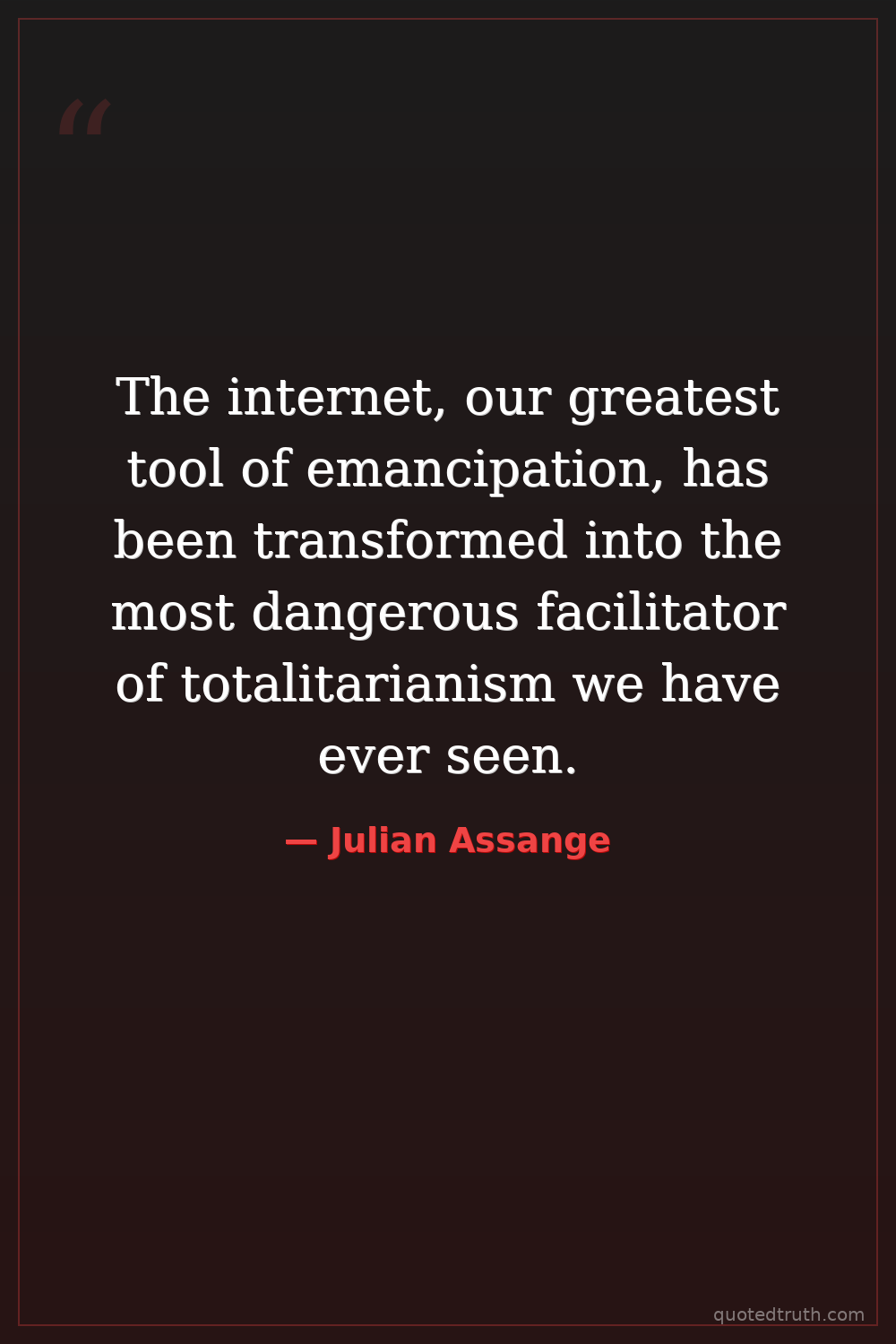 The internet, our greatest tool of emancipation, has been transformed into the most dangerous facilitator of totalitarianism we have ever seen.
