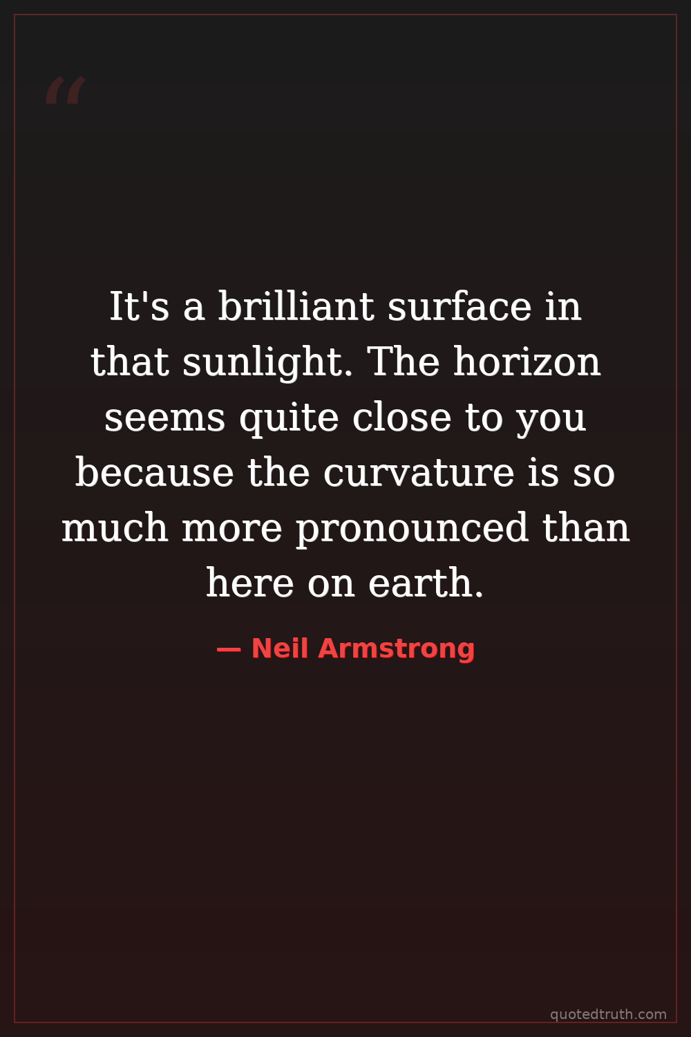 Philosophical"The important achievement of Apollo was demonstrating that humanity is not forever chained to this planet, and our destiny is out in the stars."