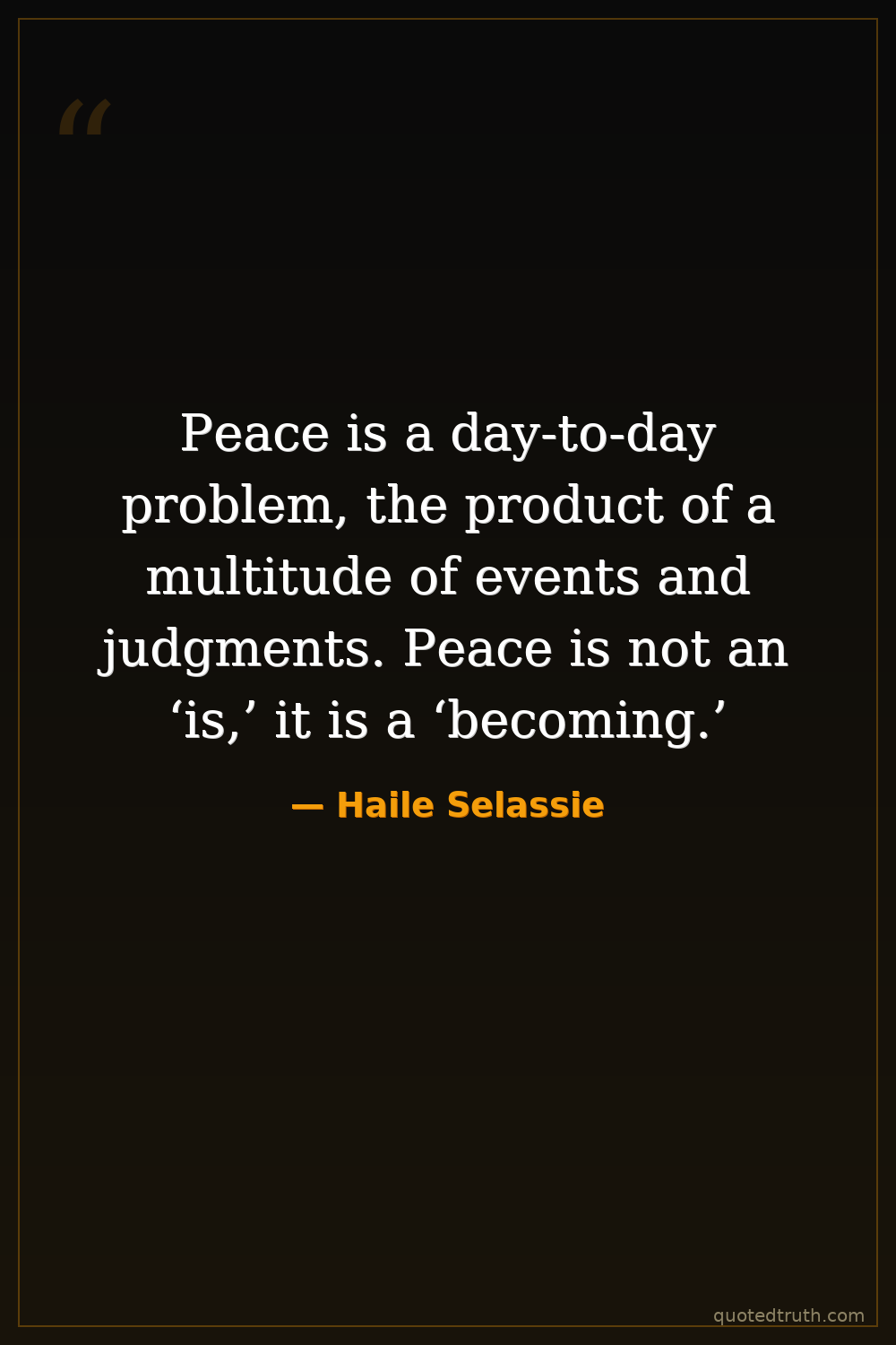 Peace is a day-to-day problem, the product of a multitude of events and judgments. Peace is not an ‘is,’ it is a ‘becoming.’