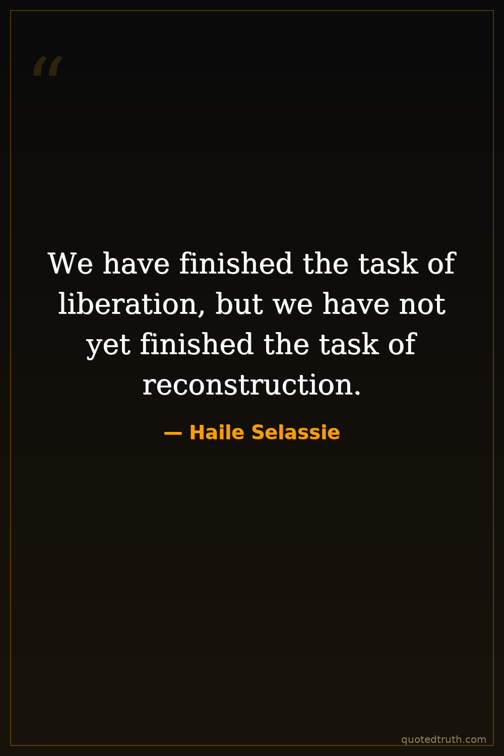 We have finished the task of liberation, but we have not yet finished the task of reconstruction.
