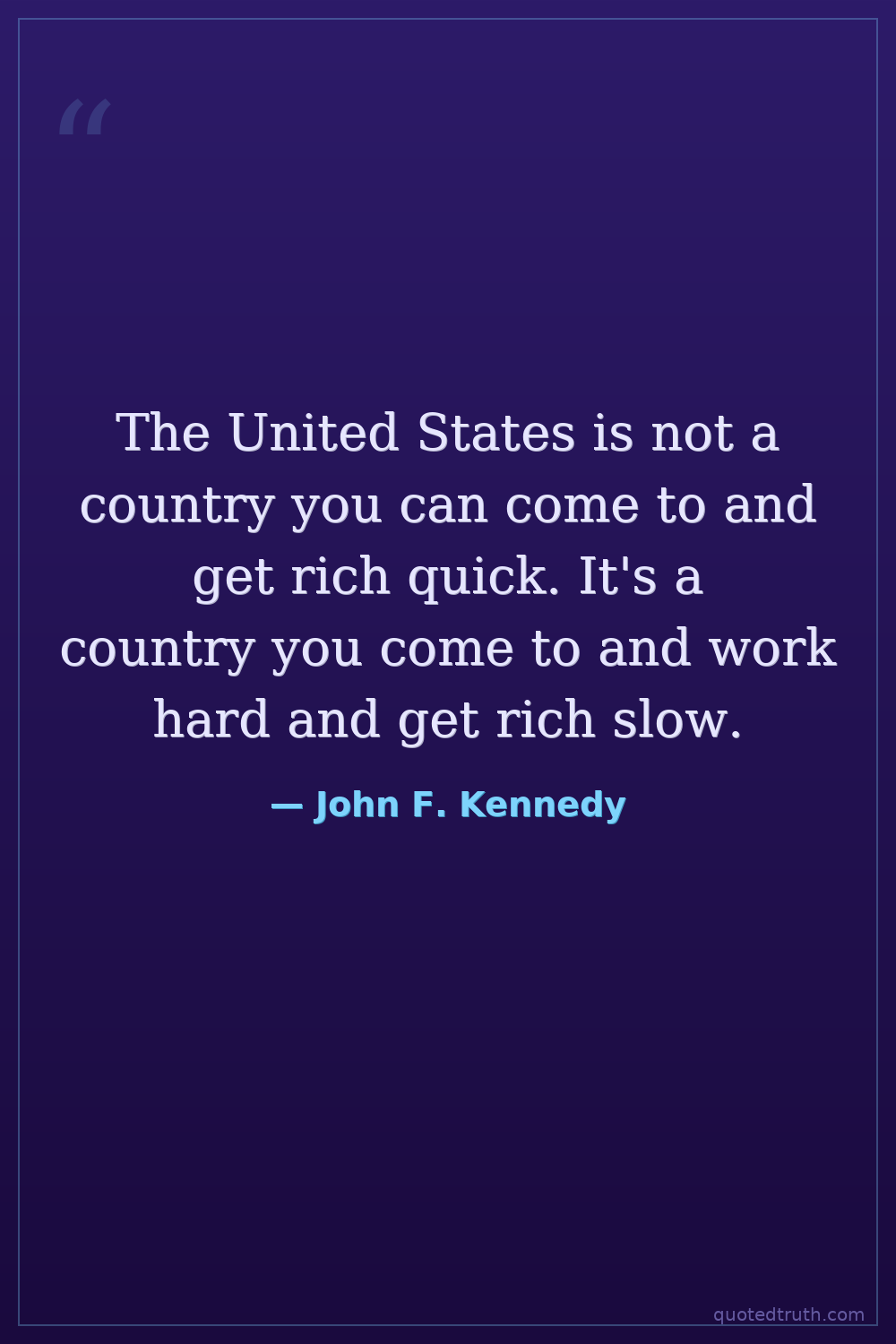 The United States is not a country you can come to and get rich quick. It's a country you come to and work hard and get rich slow.