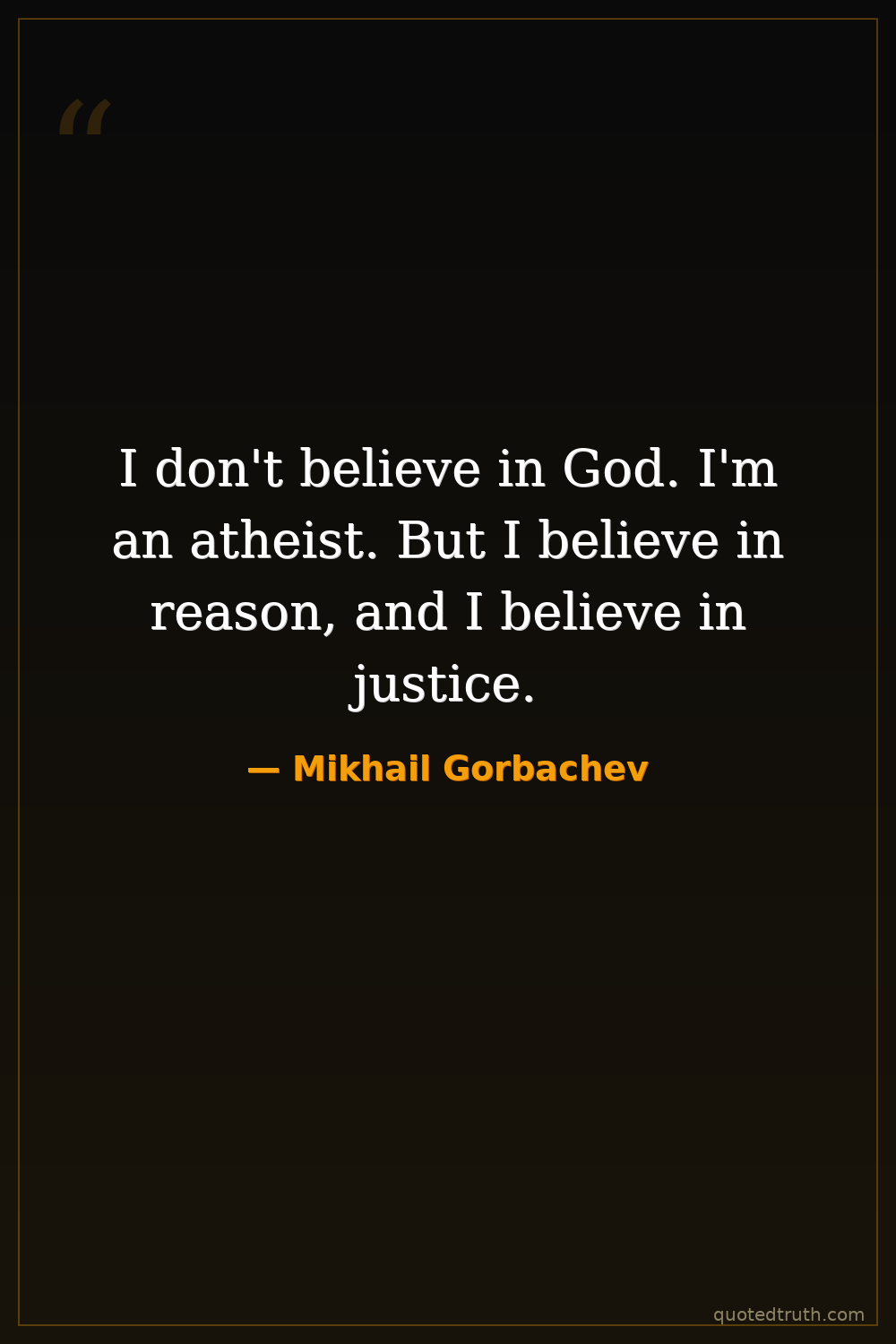 I don't believe in God. I'm an atheist. But I believe in reason, and I believe in justice.