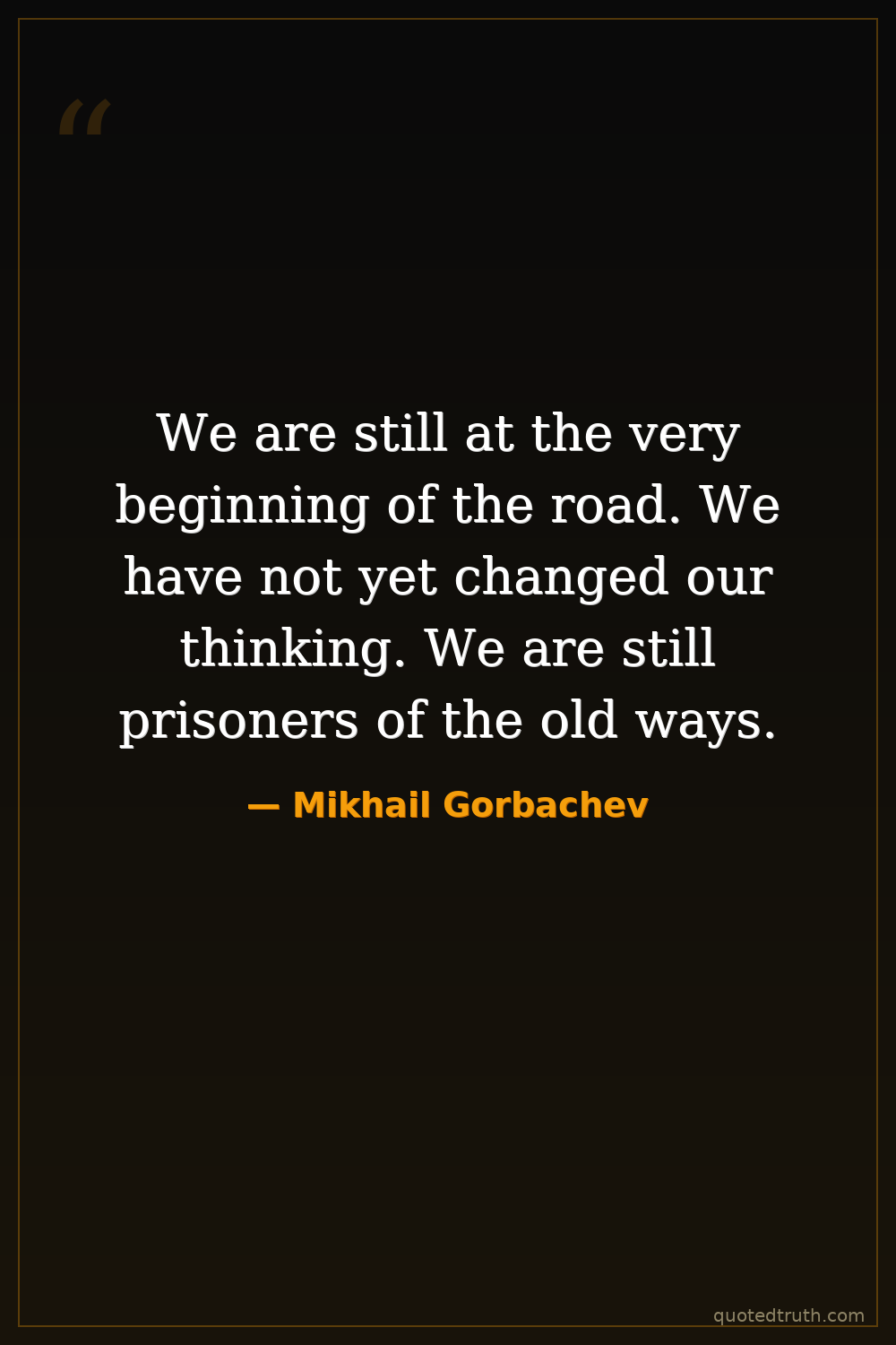 We are still at the very beginning of the road. We have not yet changed our thinking. We are still prisoners of the old ways.