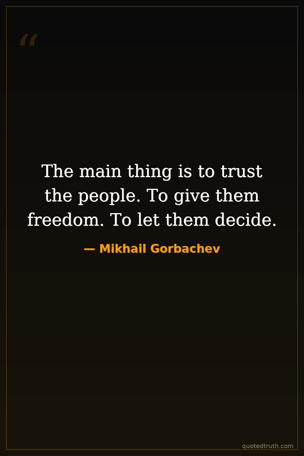 The main thing is to trust the people. To give them freedom. To let them decide.