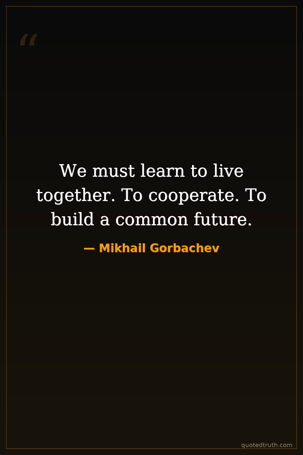 We must learn to live together. To cooperate. To build a common future.