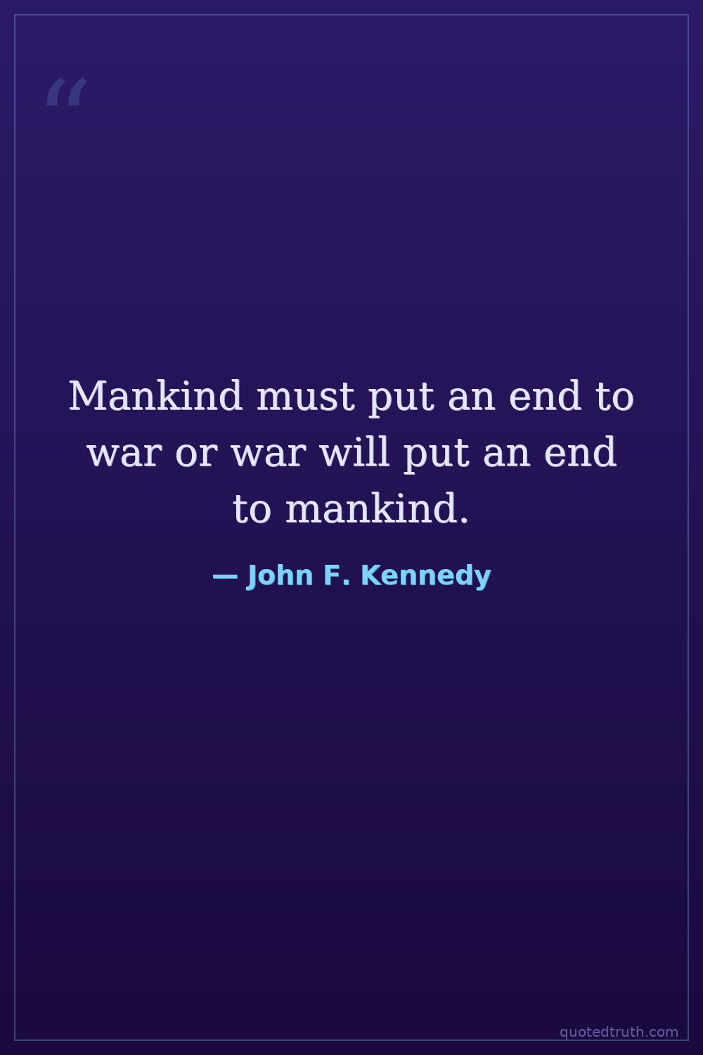 Mankind must put an end to war or war will put an end to mankind.