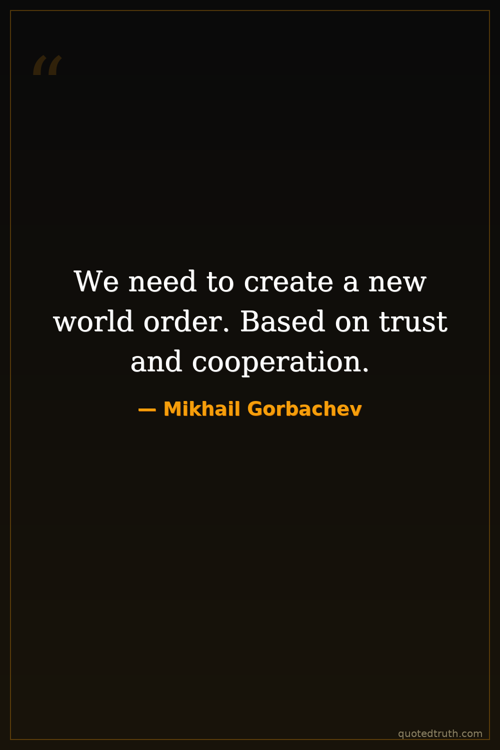 We need to create a new world order. Based on trust and cooperation.
