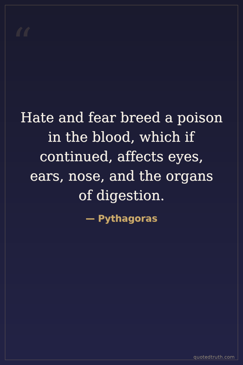 Hate and fear breed a poison in the blood, which if continued, affects eyes, ears, nose, and the organs of digestion.