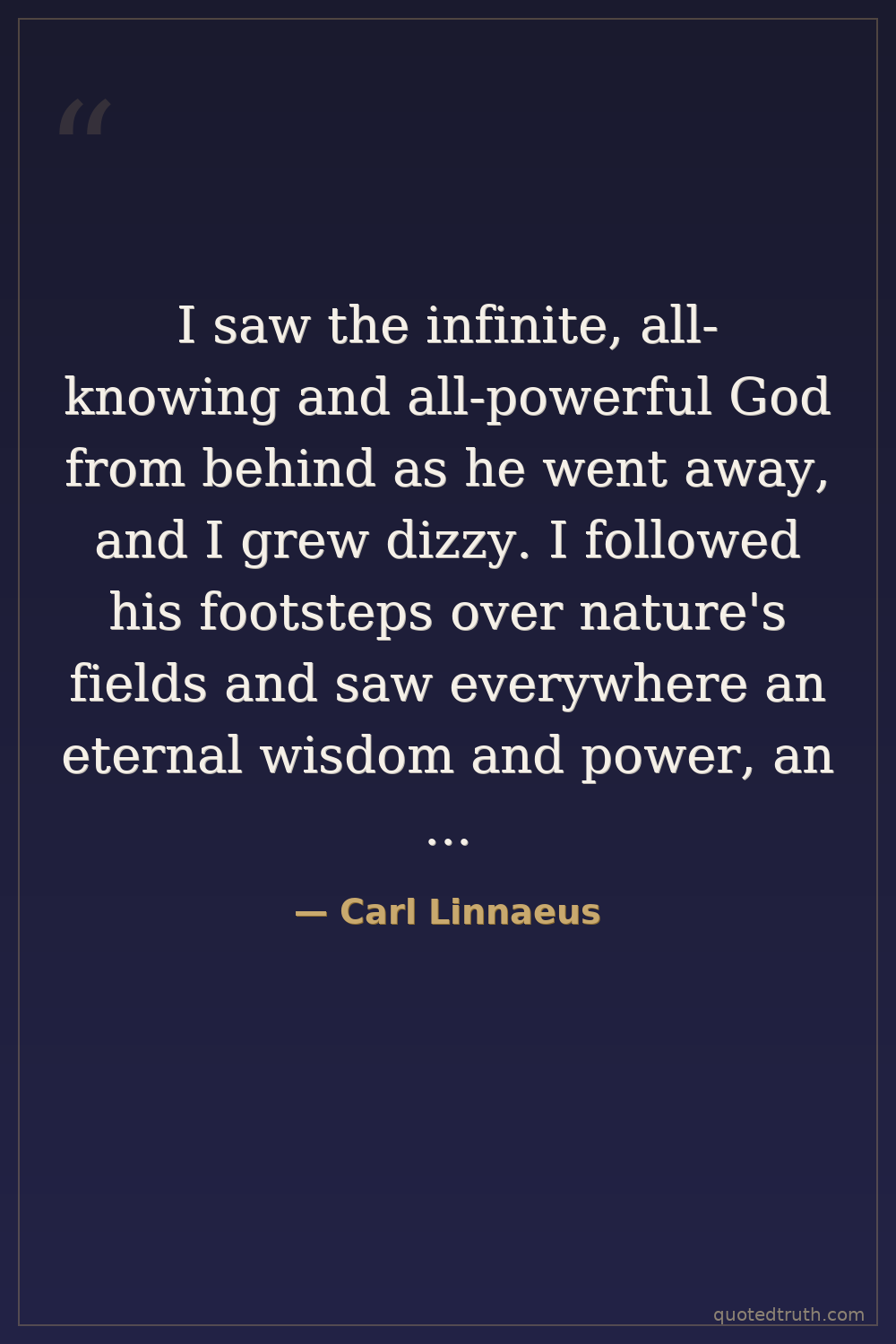 I saw the infinite, all-knowing and all-powerful God from behind as he went away, and I grew dizzy. I followed his footsteps over nature's fields and saw everywhere an eternal wisdom and power, an inscrutable perfection.