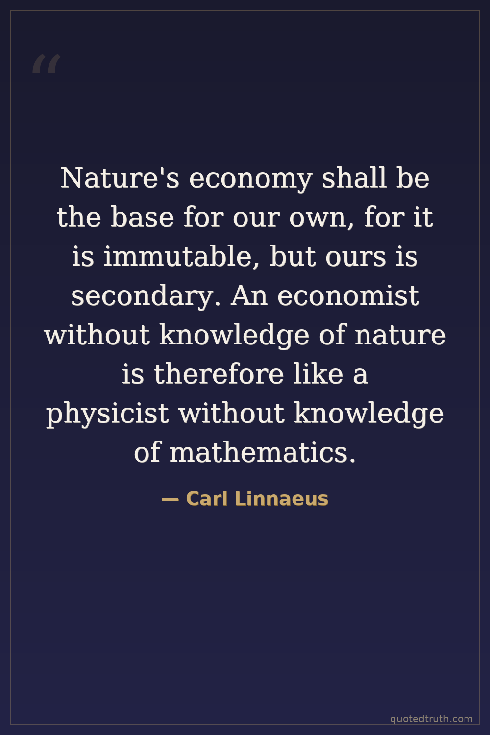 Nature's economy shall be the base for our own, for it is immutable, but ours is secondary. An economist without knowledge of nature is therefore like a physicist without knowledge of mathematics.