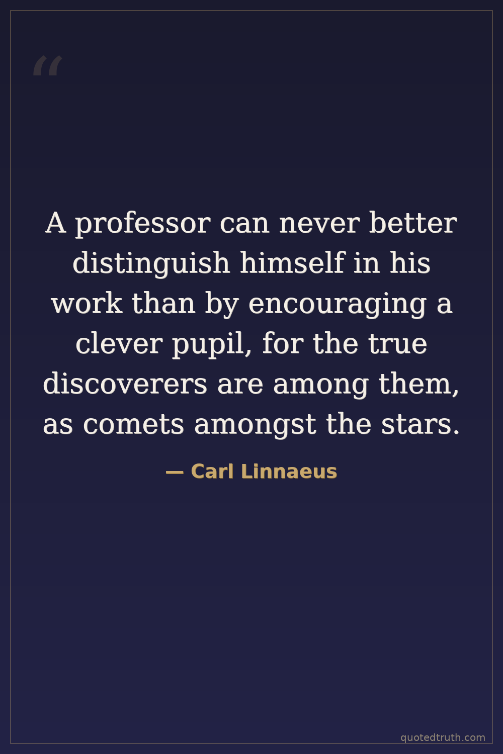 A professor can never better distinguish himself in his work than by encouraging a clever pupil, for the true discoverers are among them, as comets amongst the stars.